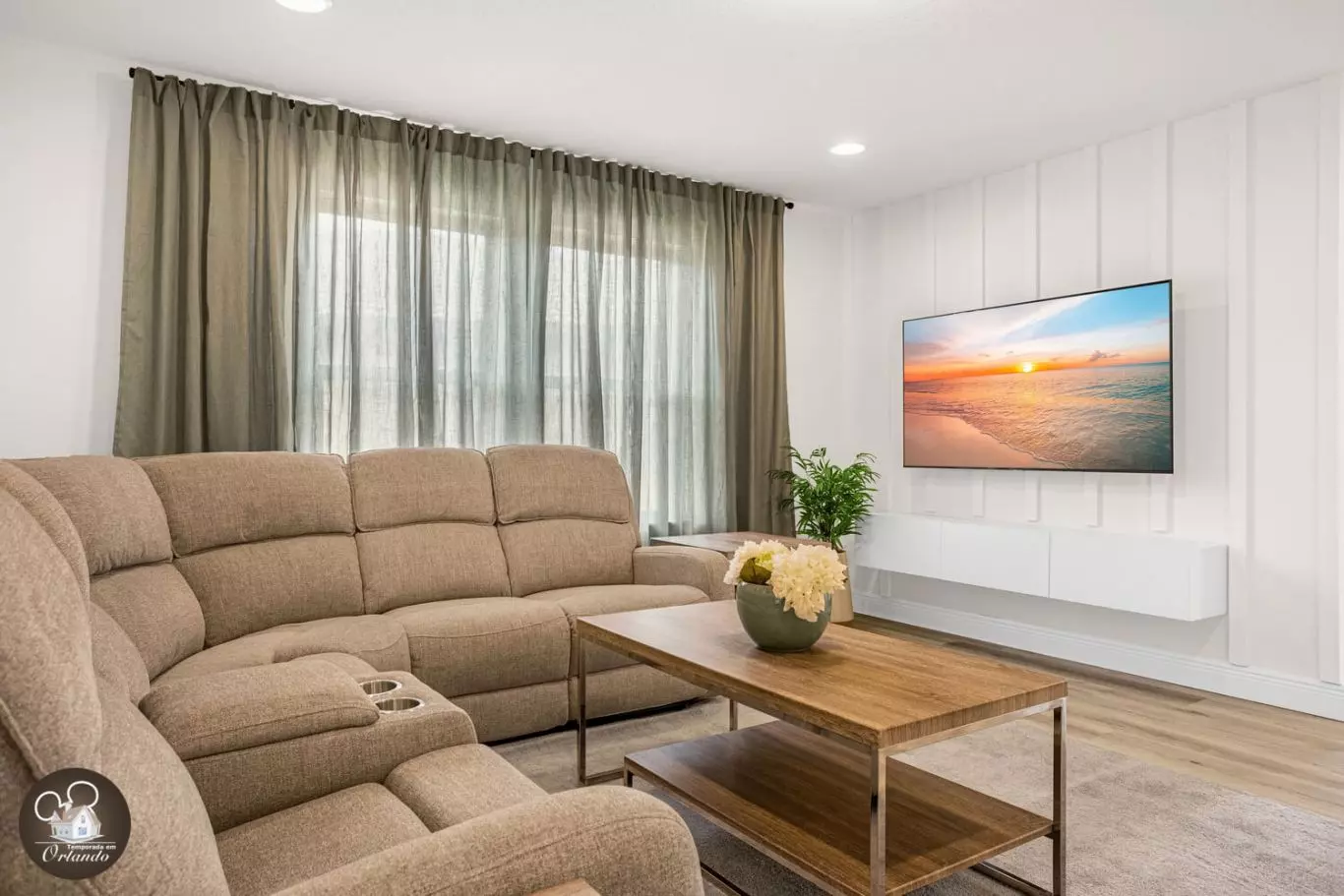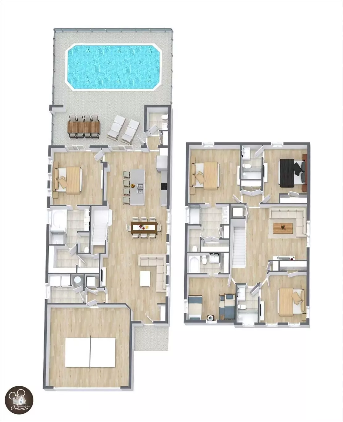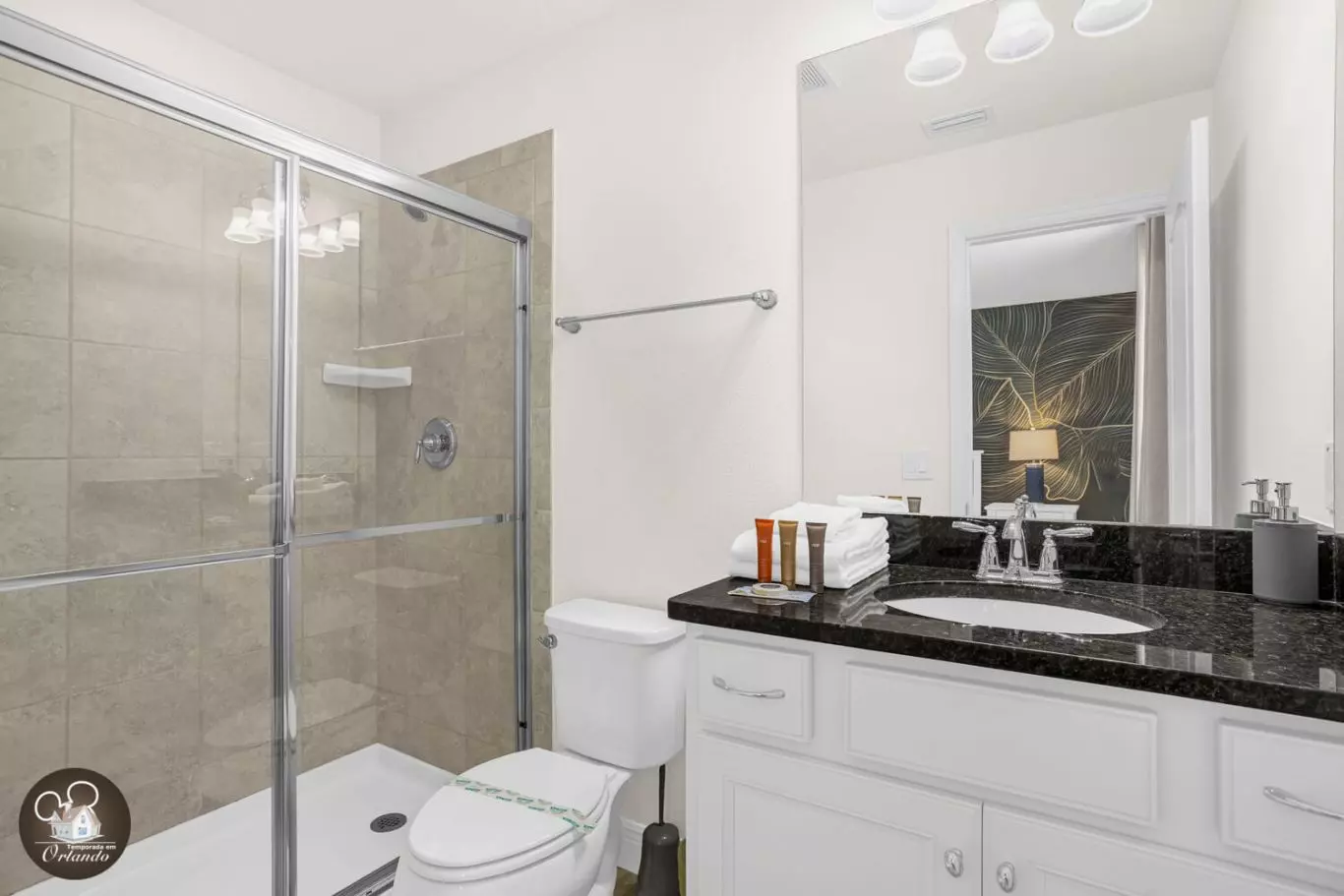 Nossa estadia foi incrível! Viemos para beber ao redor do mundo e a casa estava convenientemente localizada para os parques. Tudo estava limpo e havia muito espaço para o nosso grupo de 8 adultos. A piscina era privada e limpa, com uma área de estar coberta privativa que apreciamos. O bairro era seguro e protegido. Definitivamente reservaremos novamente para nossa viagem anual!
