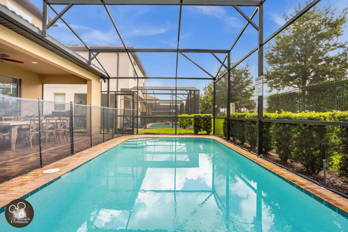 Nos fundos, a piscina privativa proporciona um ambiente relaxante e exclusivo, ideal para curtir o clima da Flórida com total conforto.