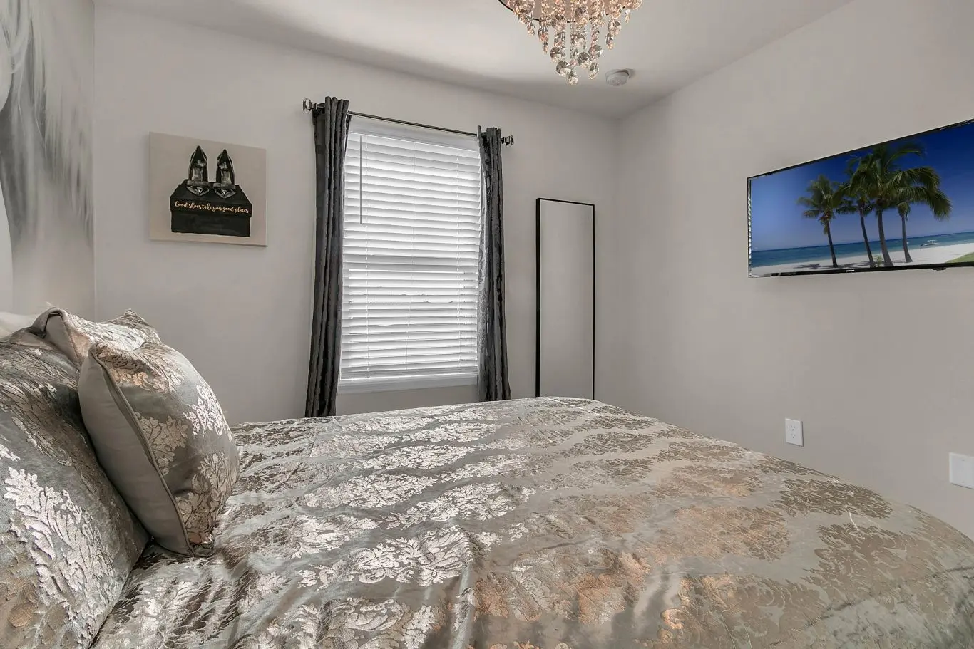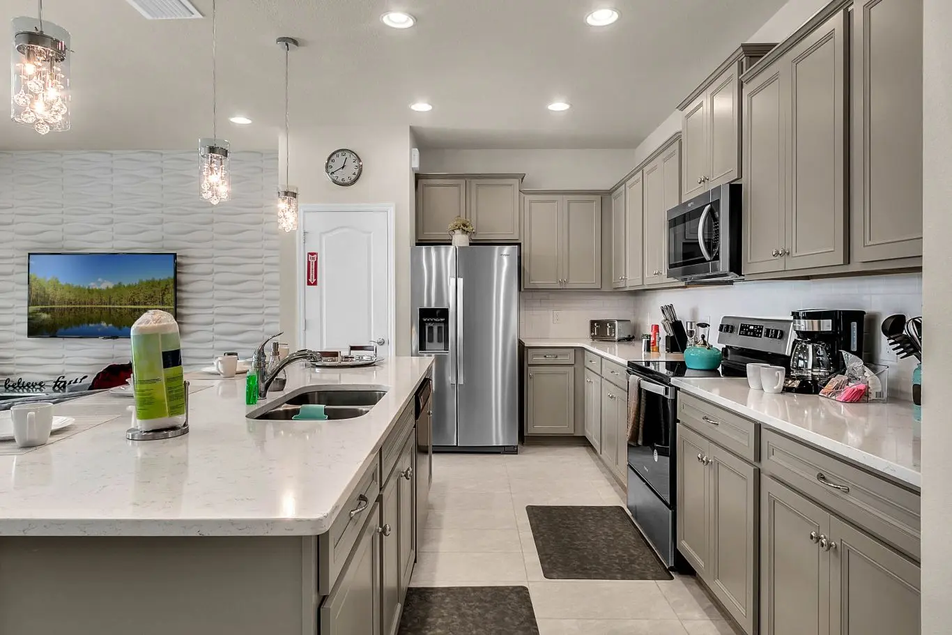 Essa acomodação proporcionou uma estadia de férias muito confortável. Os quartos eram muito parecidos com as fotos, e havia uma bela cozinha com muitos utensílios. No total, ficamos com 15 pessoas e pudemos nos sentir muito confortáveis e aproveitar a casa. Minha parte favorita foi que, durante o check-in e check-out, usamos um código na porta (estávamos chegando muito tarde e facilitou muito). A única coisa que faltava nos colchões eram travesseiros e cobertores. A equipe respondeu rápido e trouxe as coisas que estavam faltando. Acho que esta casa é perfeita para famílias grandes e muito agradável para crianças pequenas. Além disso, havia TVs em todos os quartos, o que é muito bom. Dos parques, fica muito perto deles, mas um pouco longe do aeroporto. No geral, tivemos uma ótima experiência!