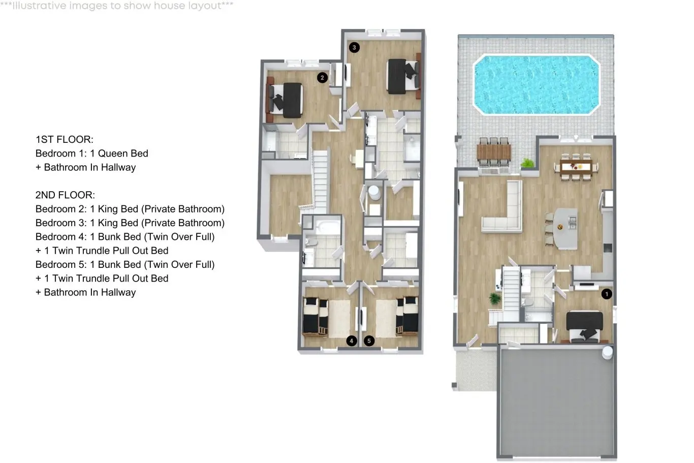 • Quarto 5: 1 Beliche e Cama auxiliar.