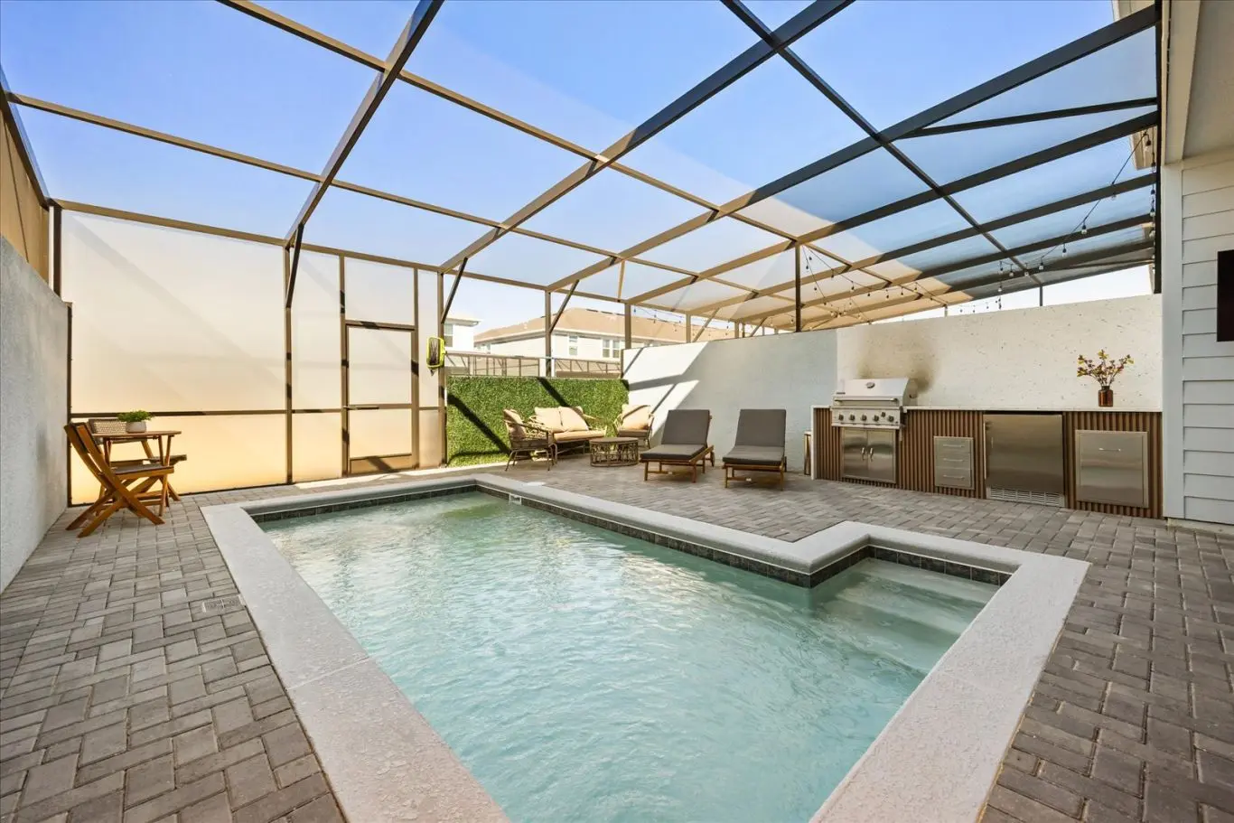 Relaxe na piscina privativa para momentos de diversão sem sair de casa.