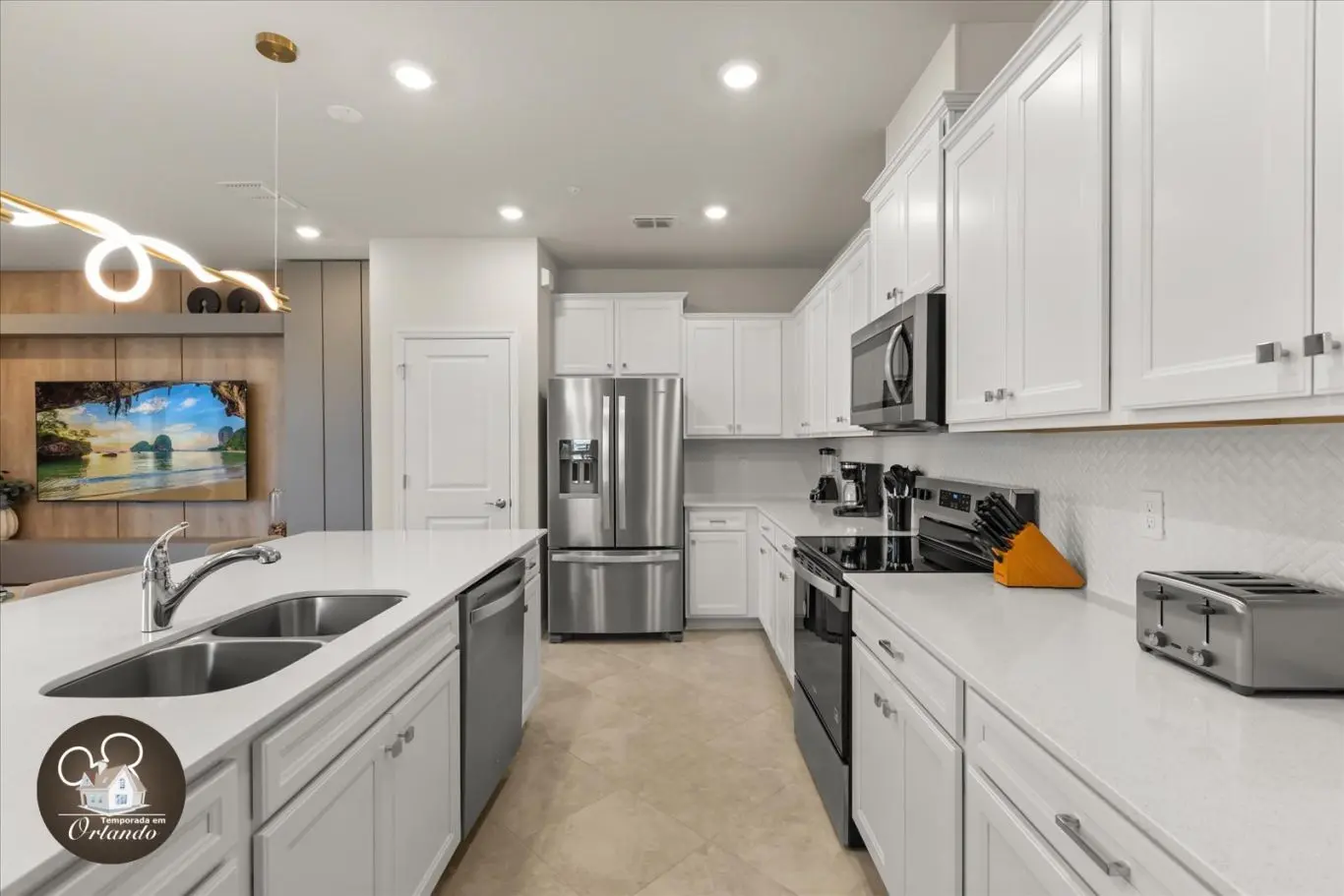 • Cozinha completa com utensílios e eletrodomésticos modernos
