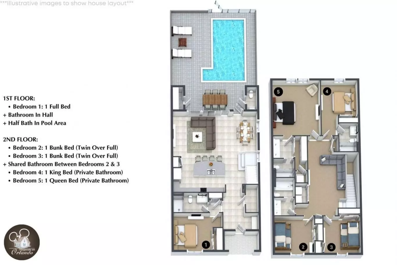 Desfrute de uma estadia de férias inesquecível em Orlando nesta casa nova e confortável, ideal para quem busca comodidade, privacidade e muito espaço. Com capacidade para até 12 pessoas, é perfeita para famílias e grupos de amigos que desejam curtir os parques da Disney com tranquilidade e conforto.