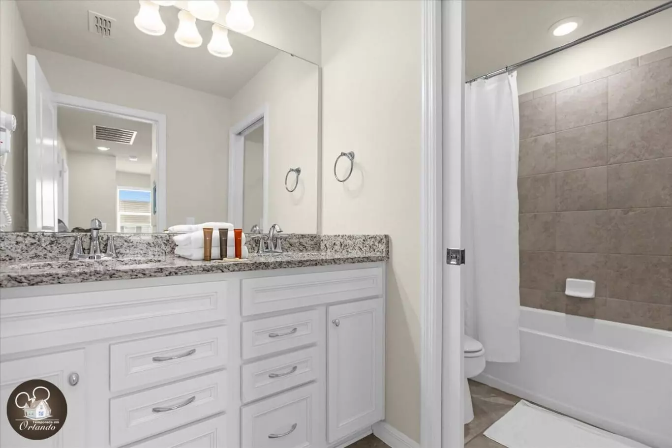 Visitei a Flórida para o Spring Break com minha mãe, minhas duas filhas adultas, dois netos e um sobrinho e, assim que anunciamos, todos adoraram! O espaço foi ótimo! E todos tinham seu próprio banheiro. A piscina era a melhor! Antes e depois de voltarmos para a casa, as crianças ficaram na água. Eu definitivamente recomendaria aquecer a piscina em abril! A piscina de estilo resort, com bares e restaurantes, também foi ótima! Perto de lojas, muitas atrações e restaurantes. Minha única sugestão seria fornecer um esfregão e uma vassoura, juntamente com alguns materiais de limpeza para estadias longas, para aqueles de nós que realmente gostam de limpar, cozinhar e tomar banho. Além disso, é importante garantir que todos os nomes de adultos estejam listados na reserva, pois a propriedade está fechada e eles devem ter todos os nomes de adultos enviados aos guardas antes de sua chegada, ou você não pode entrar no resort. No entanto, a equipe foi muito rápida em resolver o problema. Se você estiver procurando um ótimo lugar para ficar aqui, você não ficará desapontado!