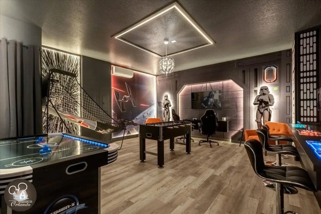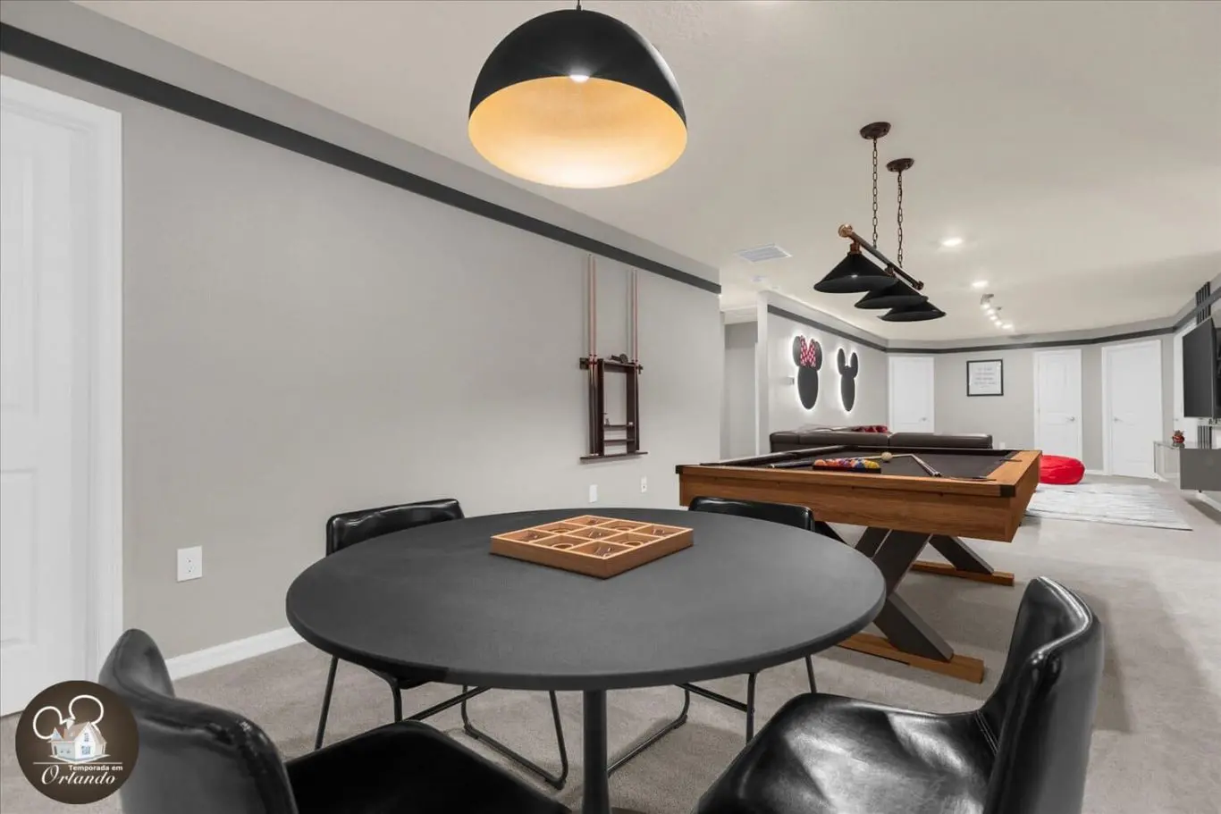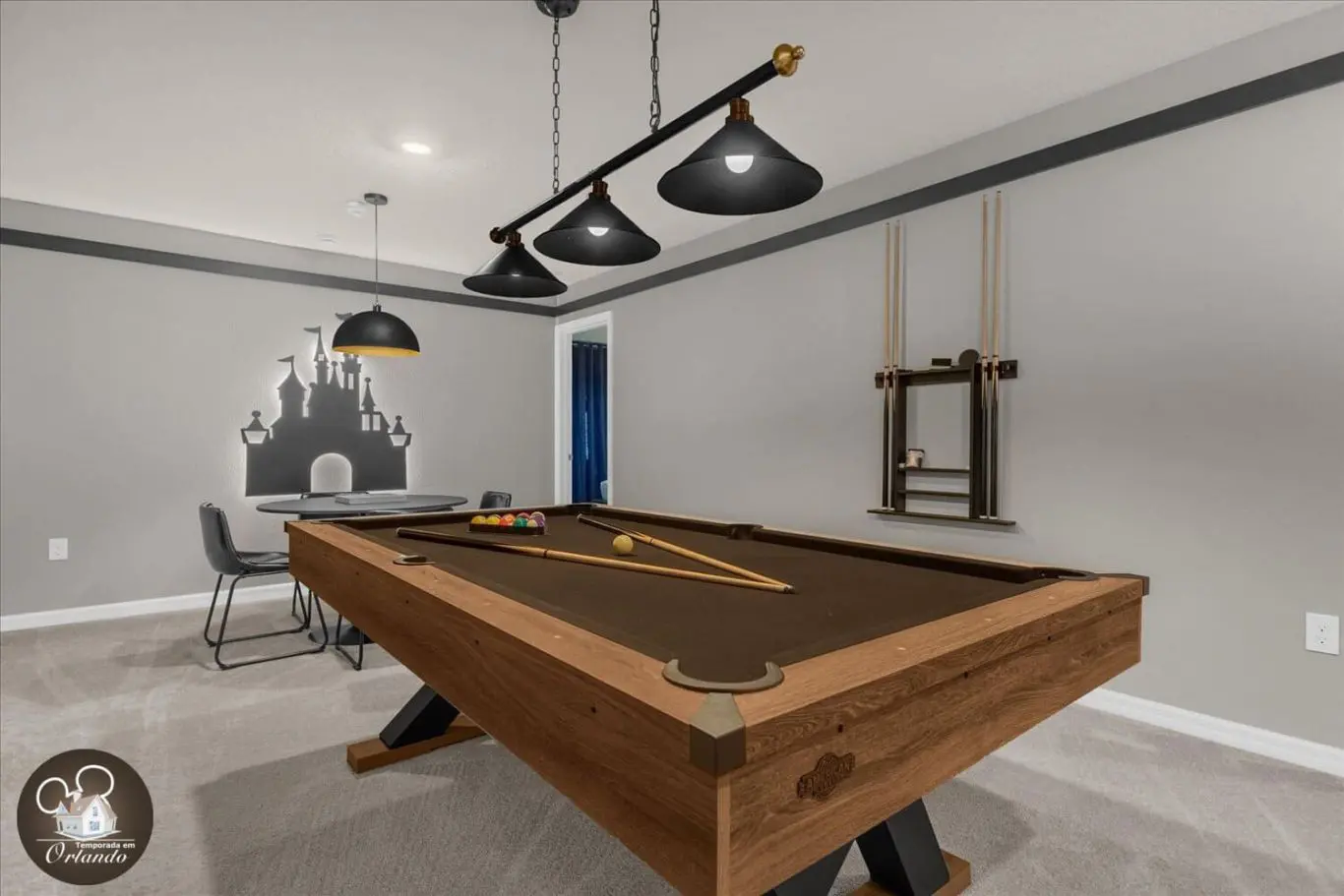 Para os entusiastas de jogos, nossa mansão oferece um salão de jogos de última geração, completo. É o local perfeito para se divertir em um ambiente descontraído.