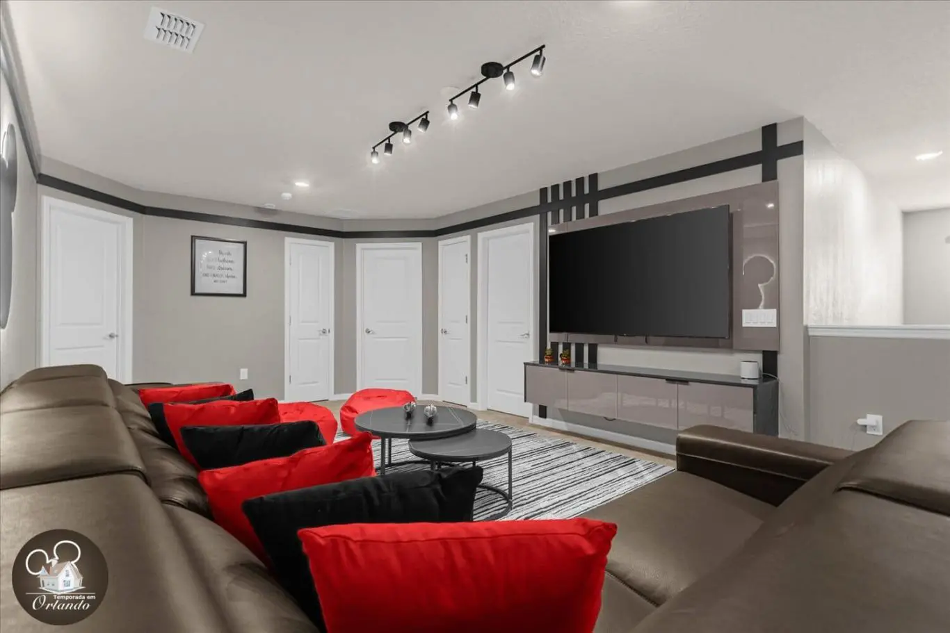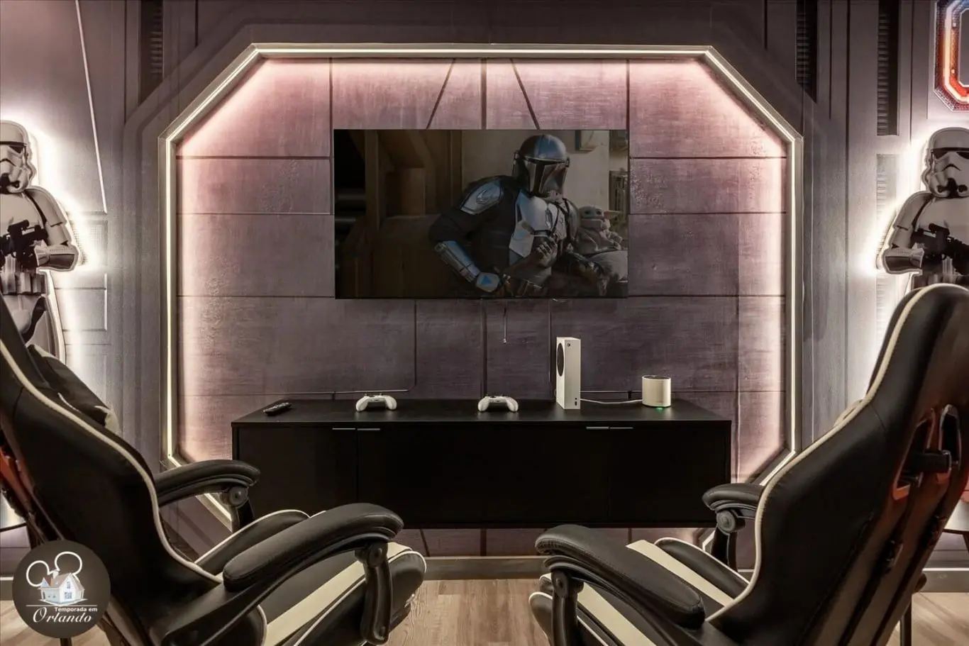 A sala de descanso é o local ideal para curtir um filme e relaxar depois de um longo dia de parques com a família e amigos, com poltronas extremamente confortáveis.
