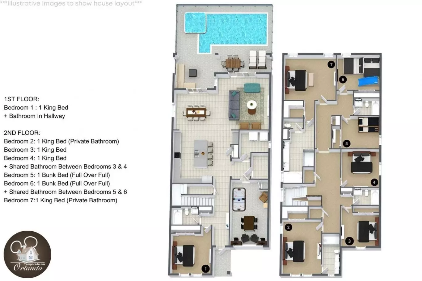 Descubra o melhor que Orlando tem a oferecer com esta casa totalmente nova, projetada para oferecer conforto e luxo a apenas minutos dos parques da Disney. Com sete quartos, é ideal para famílias grandes, grupos de amigos ou qualquer pessoa que busque uma experiência sofisticada com lazer completo.