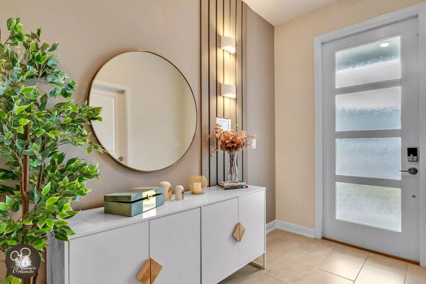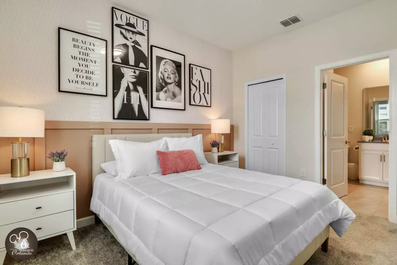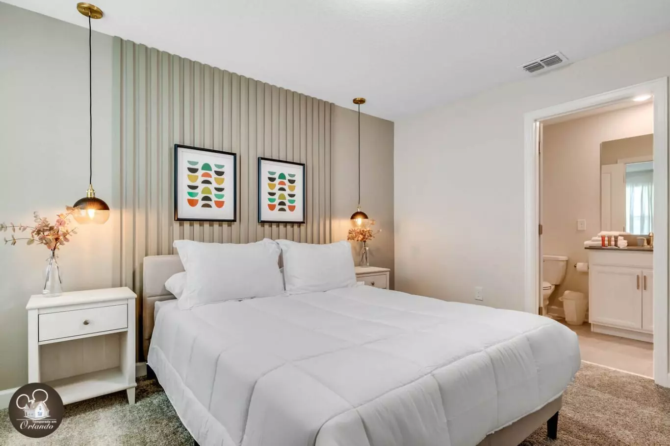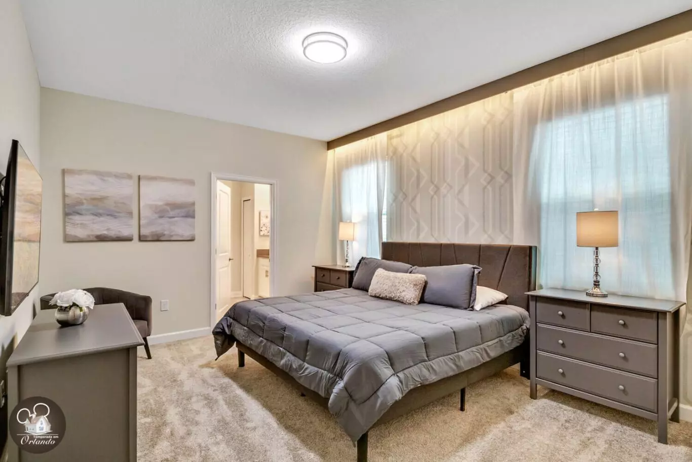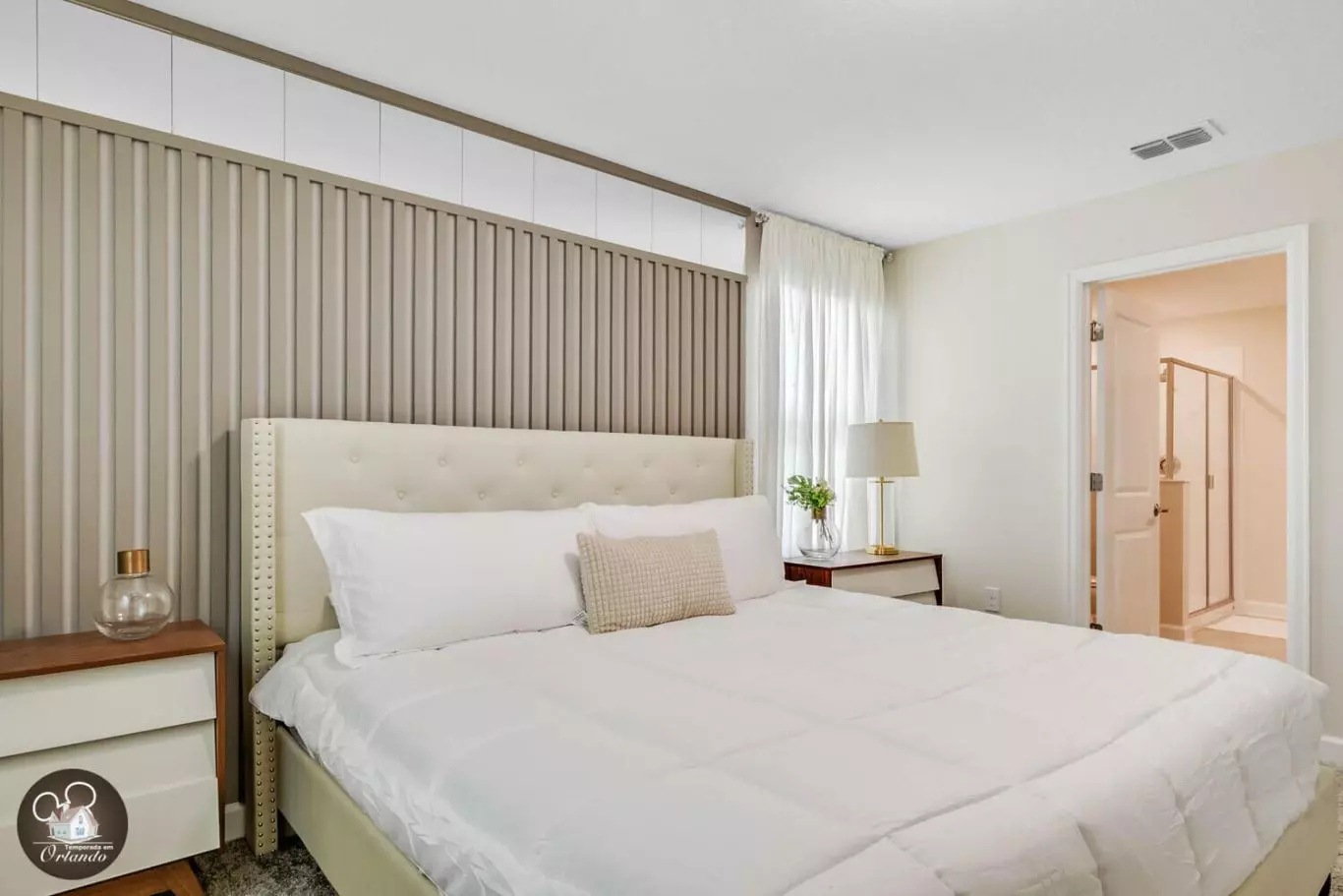 Linda casa contemporânea feita para o espaço perfeito para reuniões familiares - quartos para crianças e quartos próximos para os pais. Escolhida principalmente pela quantidade de camas king-size disponíveis, esta casa era muito maior do que o esperado! Tapetes, lençóis e até almofadas e decoração de pelúcia do Mickey Mouse pareciam limpos e os banheiros estavam todos obviamente higienizados. Embora pudéssemos ter usado mais toalhas e papel higiênico, houve um amplo aviso nas primeiras instruções de que o fornecimento de produtos de higiene pessoal era limitado. Não tivemos problemas com as entregas da InstaCart atrás do portão e havia uma lavadora/secadora de tamanho normal que usamos bem. Noites de 50 graus, desfrutamos da piscina muito quente e da banheira de hidromassagem. As casas vizinhas são muito próximas umas das outras, mas a disposição em terraços deu a cada pátio alguma privacidade; bairro parecia seguro o suficiente para caminhar à noite. Mais longe do que alguns outros aluguéis disponíveis (2 saídas na I4 para a Disney ~ 20 minutos com tráfego de construção), a sensação luxuosa e o espaço extra valeram a diferença.