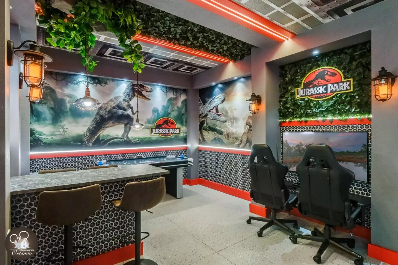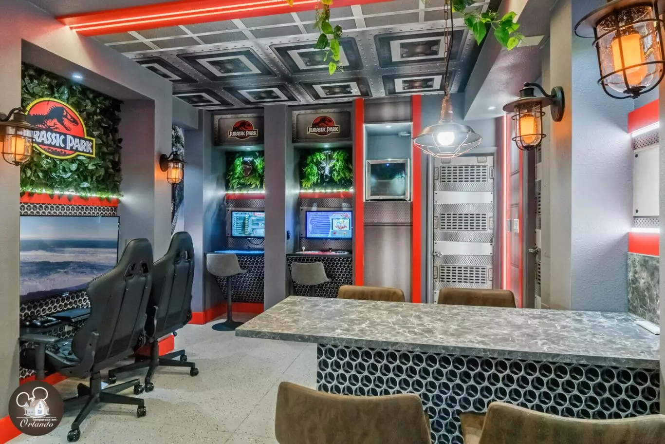 Este era um ótimo espaço a uma distância razoável da Disney e de outras atividades de Orlando. O valor é excelente, especialmente para uma família! Os quartos temáticos foram bem executados entre iluminação, pintura e decoração. A sala de jogos Jurassic Park/World foi incrível! Um espaço tão divertido para sair e jogar. No geral, o aluguel era muito moderno e atualizado, o que apreciei para uma estadia de várias noites. Adoraria ficar aqui novamente no futuro!