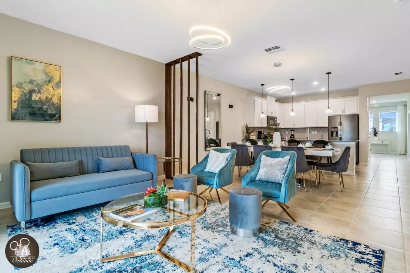 A casa estava muito limpa e bem mobiliada. Parecia que muito esforço e tempo foram investidos na curadoria de um espaço que parecia um hotel ou resort, mas com o espaço de uma casa. A cozinha está equipada com todos os itens básicos e tínhamos muitos suprimentos iniciais para durar. Percebemos que toalhas de praia ou piscina não eram fornecidas em casa. Não temos certeza se isso é algo que você pode alugar ou pedir emprestado na sede do clube onde a piscina está localizada. A casa fica a cerca de 20 minutos da Disney, o que funcionou bem para nós, no entanto, a casa fica a cerca de 40 minutos das atividades universais/mais centrais de Orlando, o que nos impediu de querer nos aventurar em Orlando e além da área da Disney, por não ser super conveniente. Tivemos uma ótima estadia e recomendamos este aluguel para quem procura um espaço agradável perto da Disney, mas não necessariamente quer ir para Orlando.