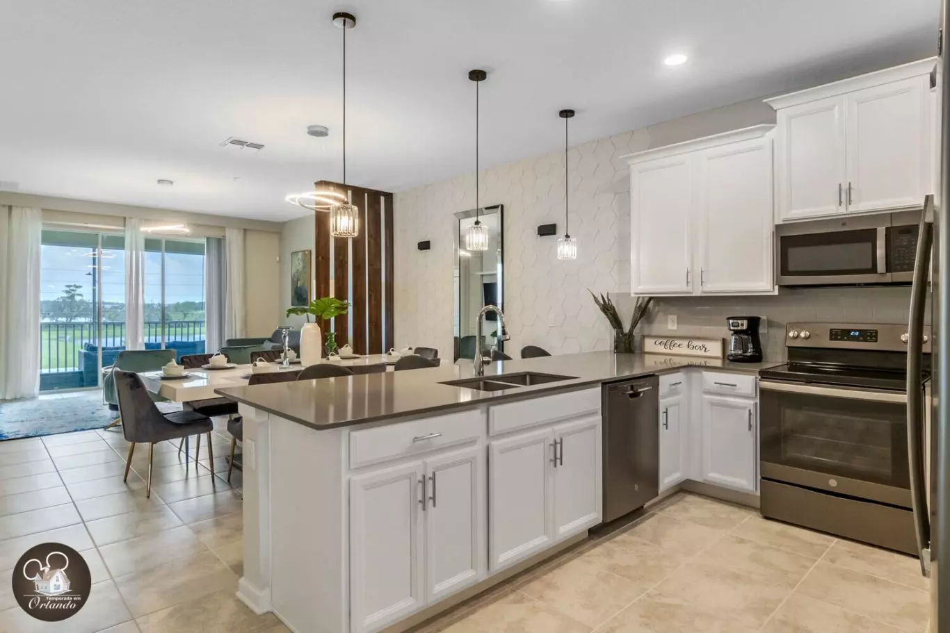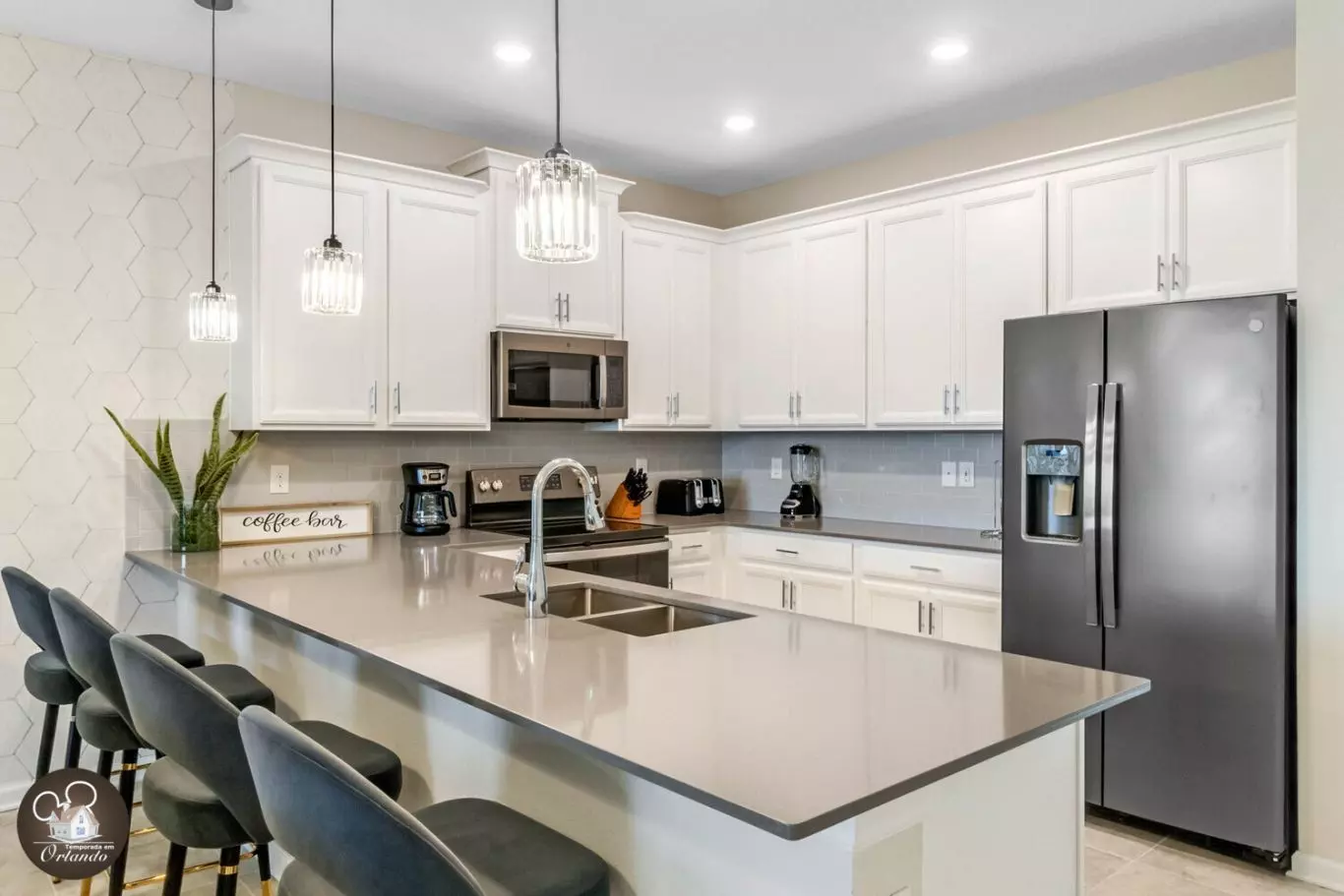 Tenho uma palavra que é Fenomenal! Lugar extremamente limpo e moderno. Eu me senti como se estivesse em casa. Minha família e eu viajamos de Maryland. A equipe facilitou o processo. Fiz todo mundo tirar os sapatos na porta porque era tão bonito e limpo. Tudo o que precisávamos foi fornecido. Esta foi a primeira vez que viajei com meu bebê e fiquei realmente surpreso ao encontrar uma cadeira alta e um cercadinho para ele. Publix fica a menos de 5 minutos de distância se precisar de suprimentos extras. Fomos para a Disney World, que ficava a cerca de 20 minutos de distância. Uma viagem fácil. A área é muito agradável e todos muito simpáticos. Obrigado à equipe pela experiência maravilhosa.
