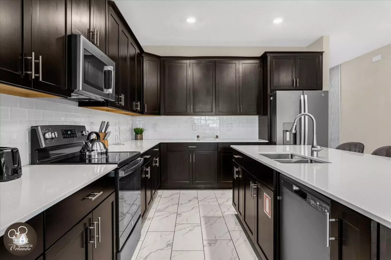 Para completar, a área externa conta com uma linda piscina privativa, ideal para relaxar após um dia nos parques ou simplesmente aproveitar o clima da Flórida com total privacidade.