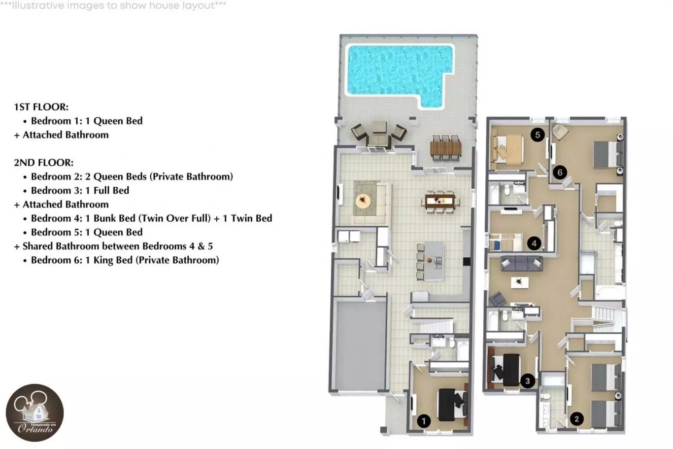 Casa para temporada em Orlando com 6 quartos e piscina privativa • Ideal para famílias grandes a poucos minutos da Disney