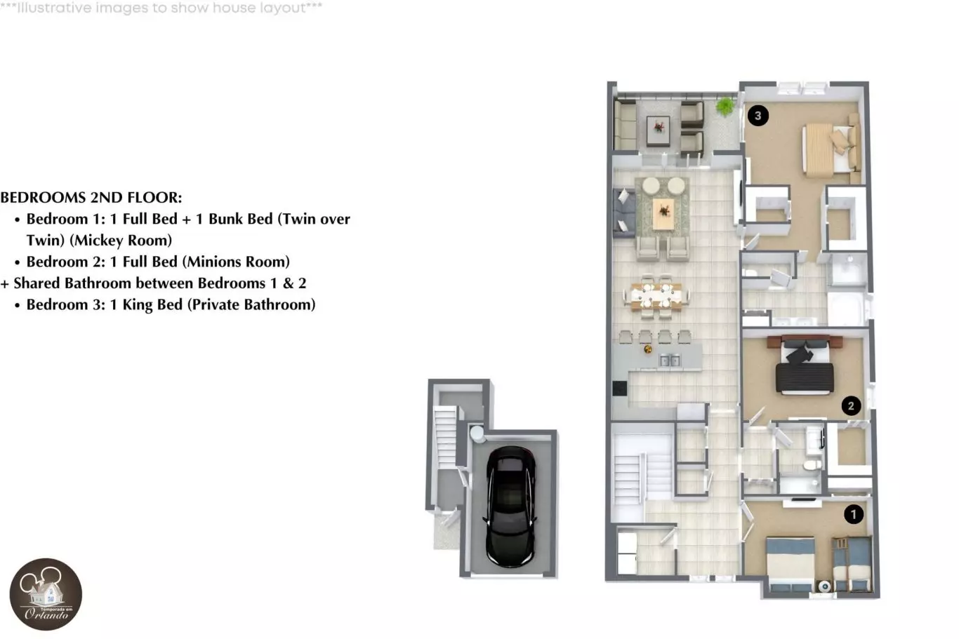Casa para temporada em Orlando com 3 quartos e estrutura resort • Acomodação moderna e funcional para toda a família