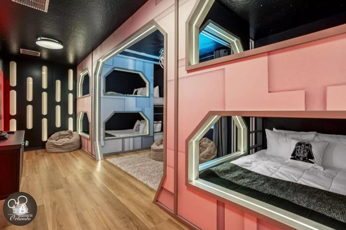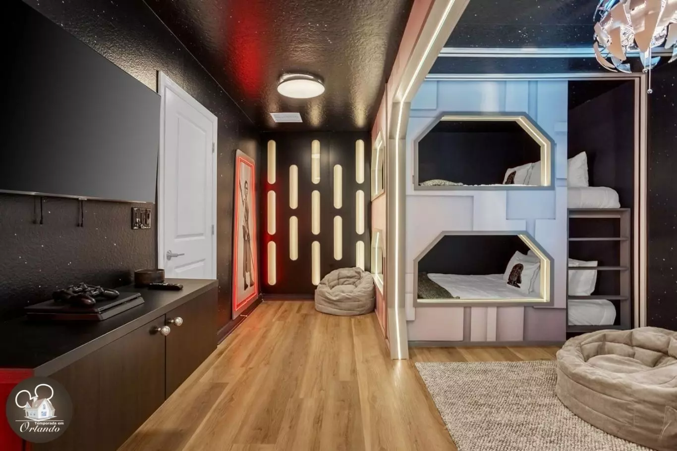 O salão de jogos moderno e a sala de descanso são perfeitos para curtir a noite com o grupo, sem sair de casa.