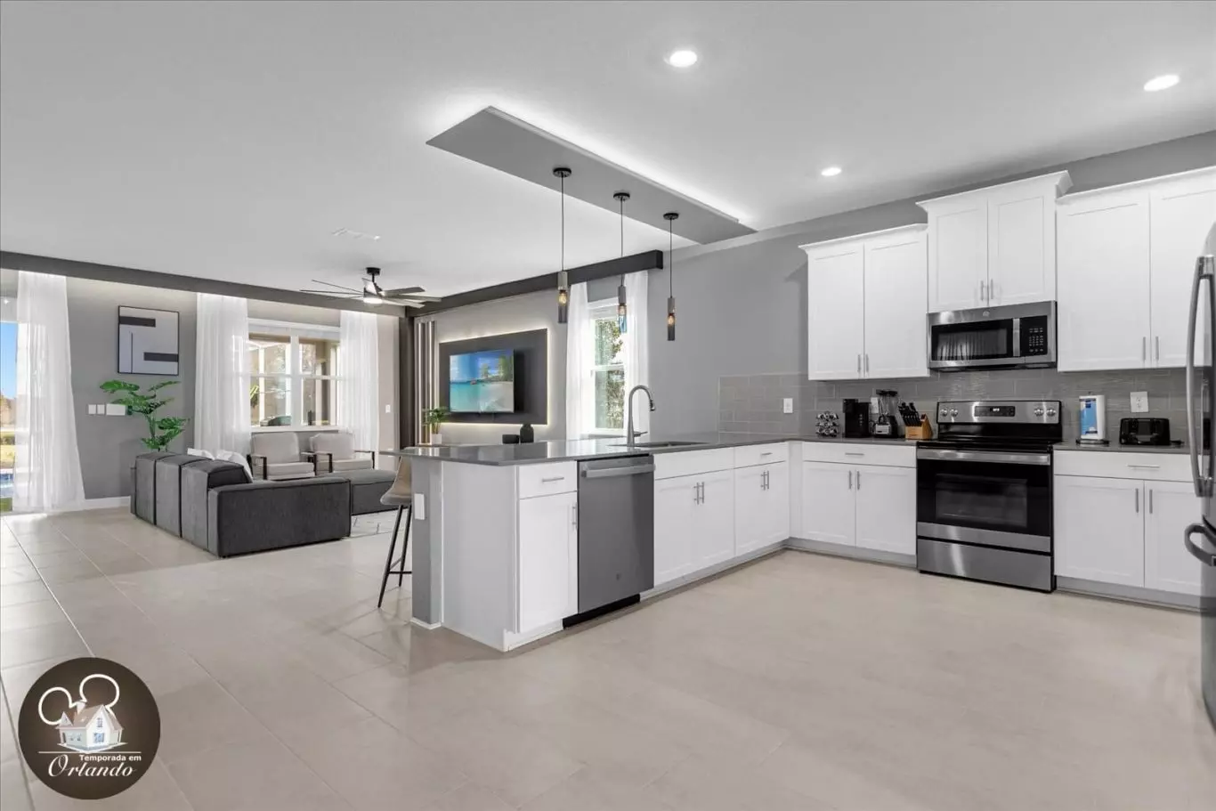 Com design moderno, pé-direito alto e uma decoração refinada, a casa oferece ambientes espaçosos, funcionais e extremamente confortáveis. Cada cômodo foi pensado para proporcionar bem-estar e praticidade durante toda a estadia.