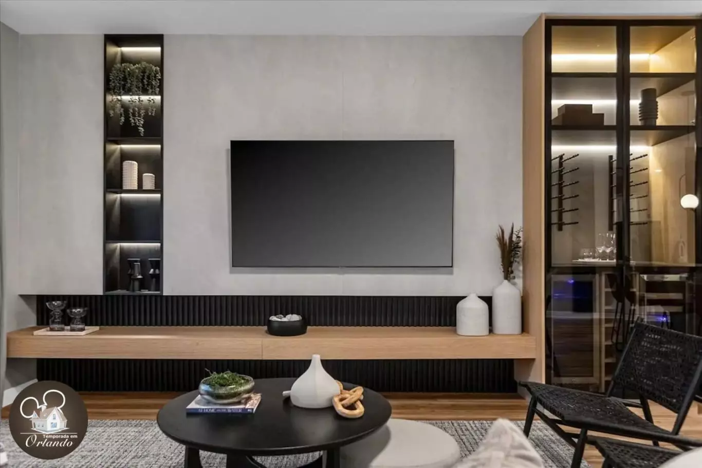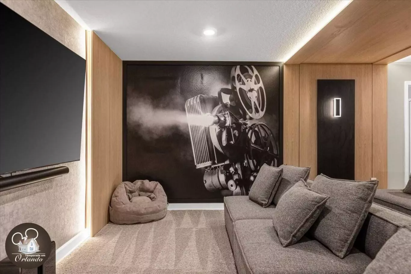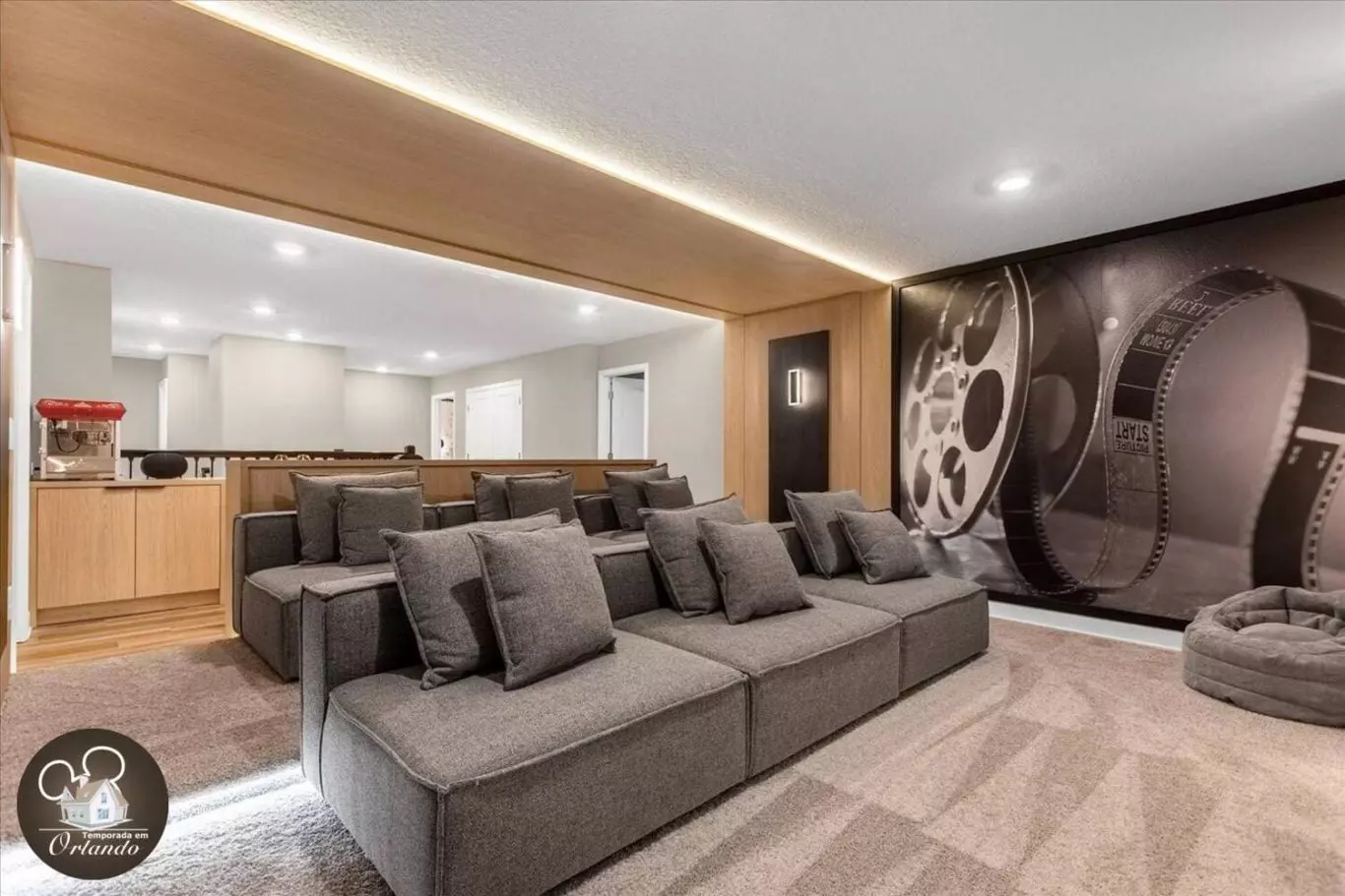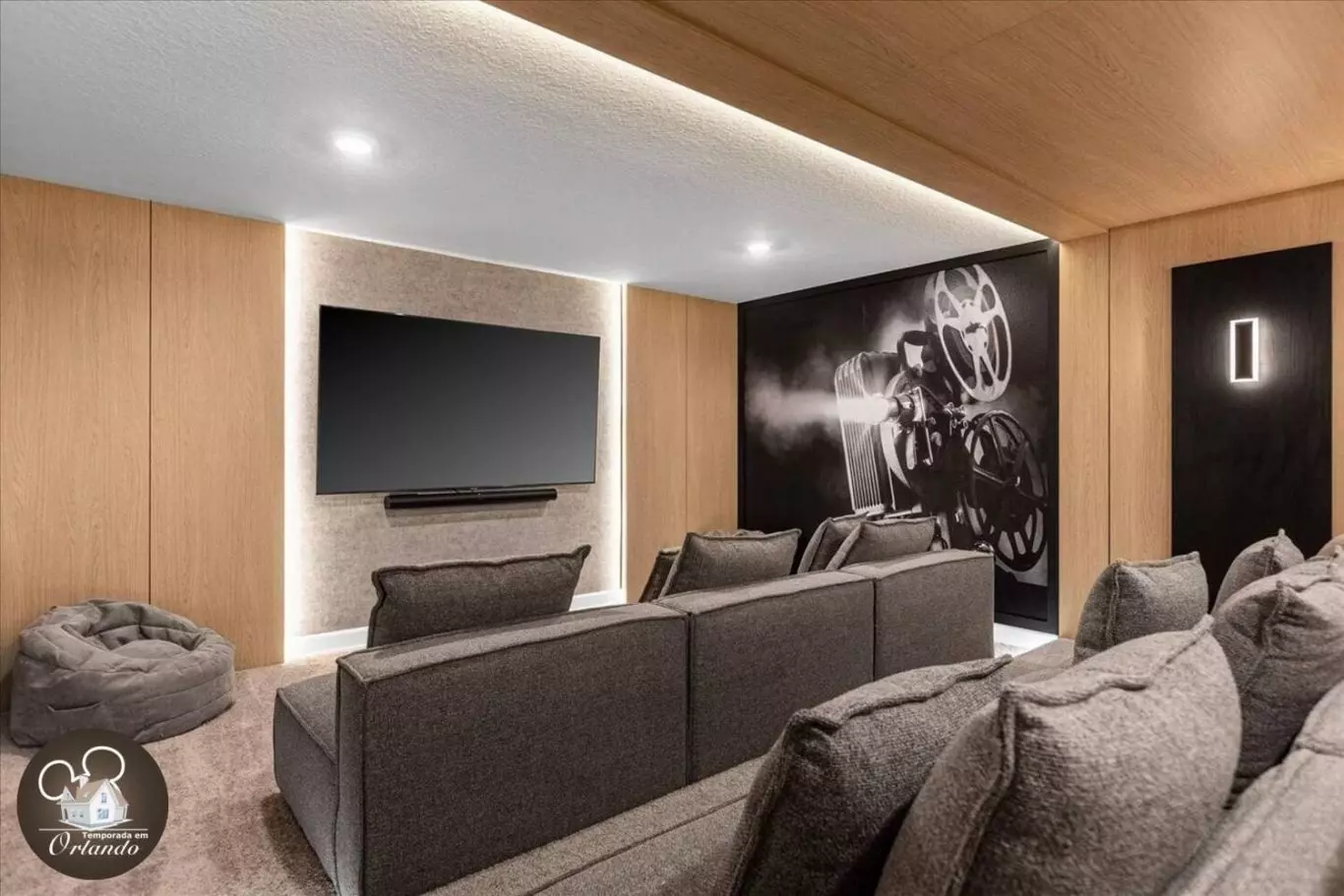 O salão de jogos garante diversão garantida para todas as idades, e a sala de cinema oferece o refúgio perfeito para maratonas relaxantes. Na área externa, a piscina privativa com jacuzzi é o destaque ideal para curtir o sol da Flórida com conforto e privacidade.