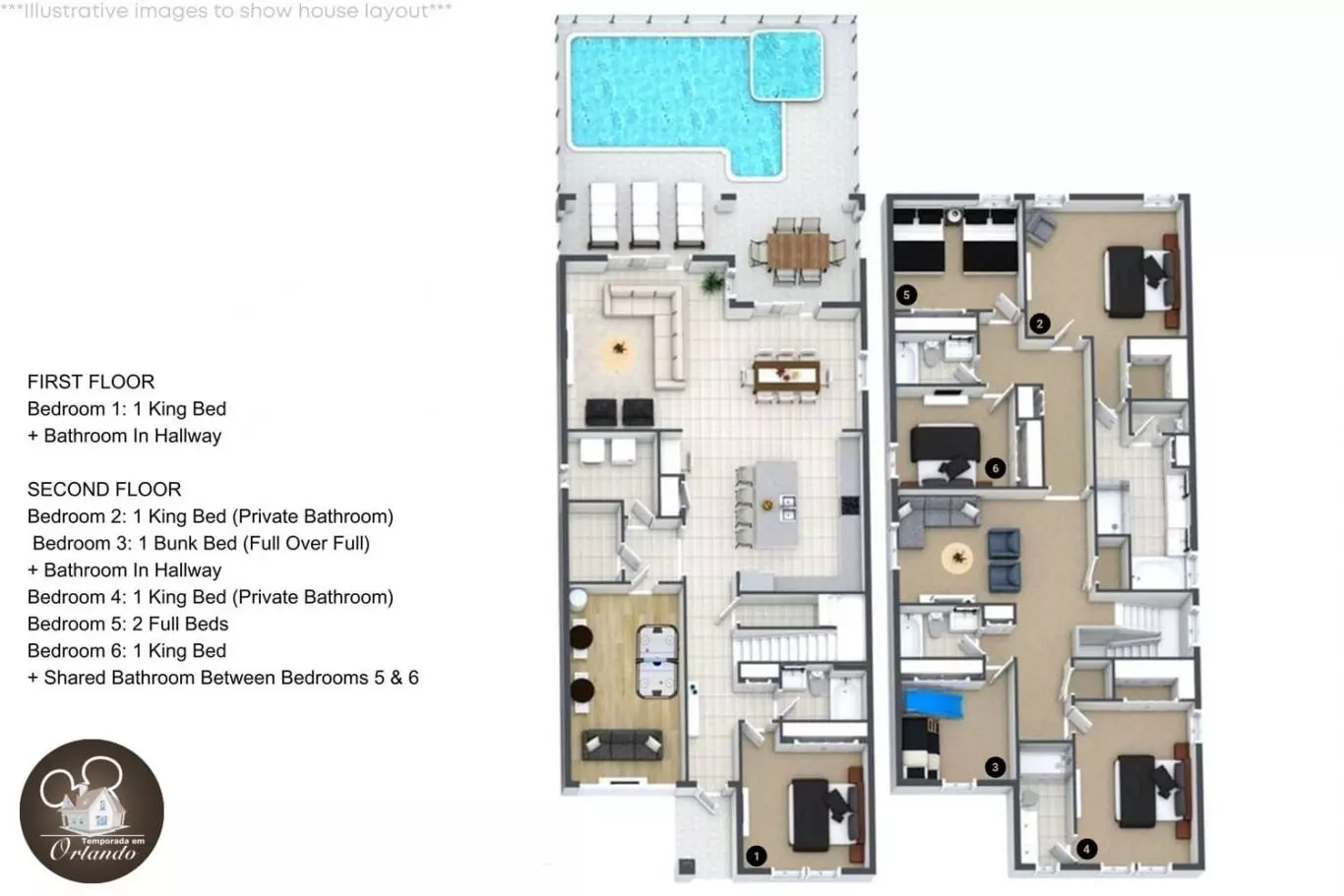 Mansão de alto padrão em Orlando com 6 quartos • Piscina privativa com jacuzzi, salão de jogos e sala de descanso • Acomoda até 16 pessoas perto da Disney