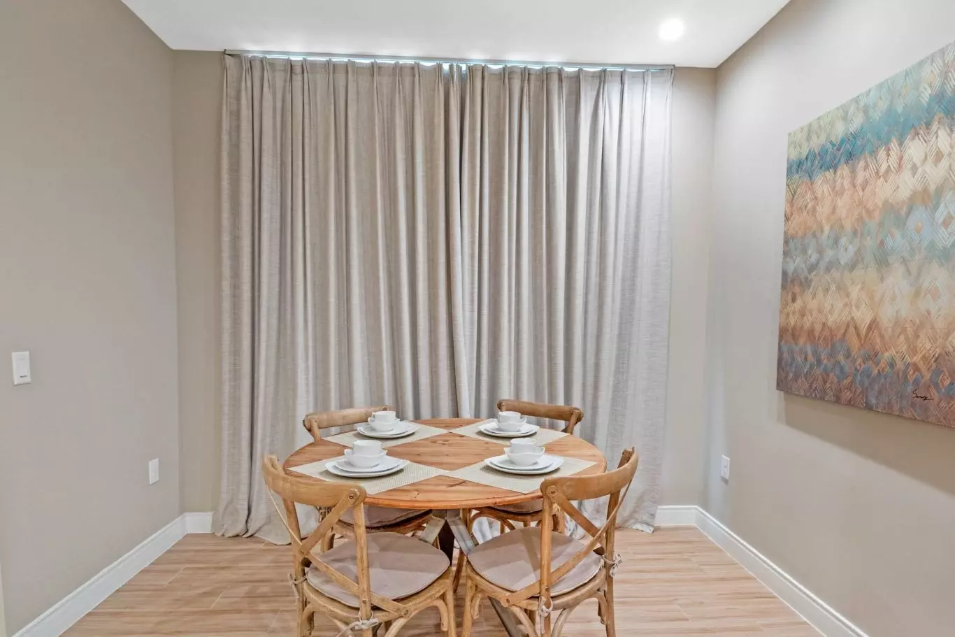 Você ganha muito espaço pelo preço! Belo layout, acomodando grupos grandes, se você tiver um. Tive um leve soluço por não ter uma máquina de café e naquela mesma noite trouxeram uma nova. Altamente recomendado.