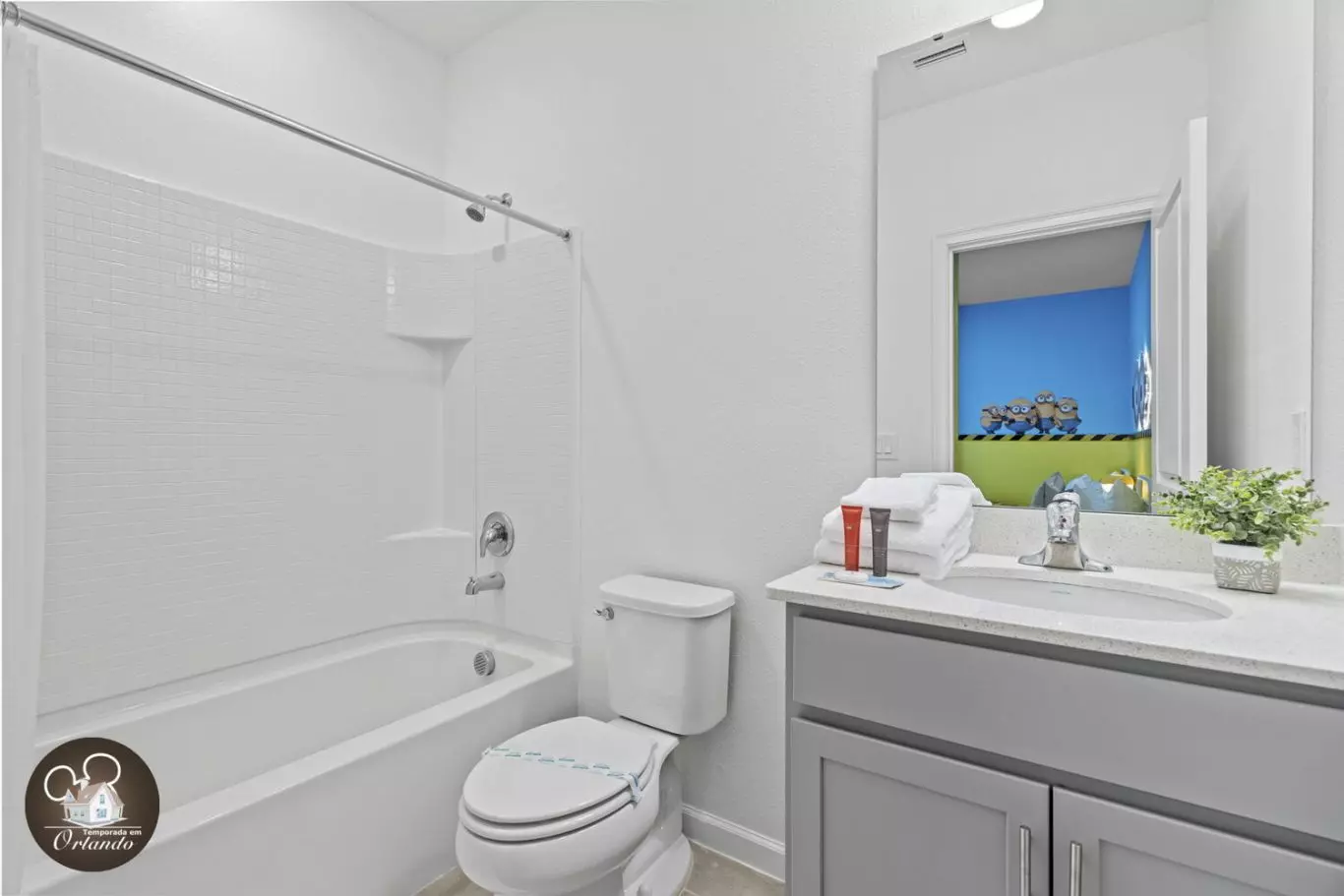 Tivemos uma ótima estadia na propriedade da equipe. Me hospedei com minha esposa, dois filhos e meus pais para visitar o SeaWorld e a Universal. A equipe foi super ágil e a unidade estava muito limpa e tinha uma ótima configuração. Meus filhos gostaram dos quartos dos Minions e do Shrek. A configuração é boa, com 4 dos 5 quartos tendo banheiro privativo e o 5º tendo um banheiro adjacente. Além disso, a disposição do espaço era ideal, pois estávamos viajando com meus pais, então eles tinham seu próprio espaço no primeiro andar, que era separado. Todos os quartos têm ótimas cortinas blackout. O condomínio tem uma nova piscina comunitária com uma parte rasa para os pequenos e também um rio preguiçoso incrível. Esta propriedade fica a menos de 5 minutos do Sea World, a menos de 15 minutos da Universal e também não muito longe da Disney, então é ideal. Por fim, a equipe nos deixou uma cesta de boas-vindas muito legal, cheia de lanches, o que foi um toque muito agradável.