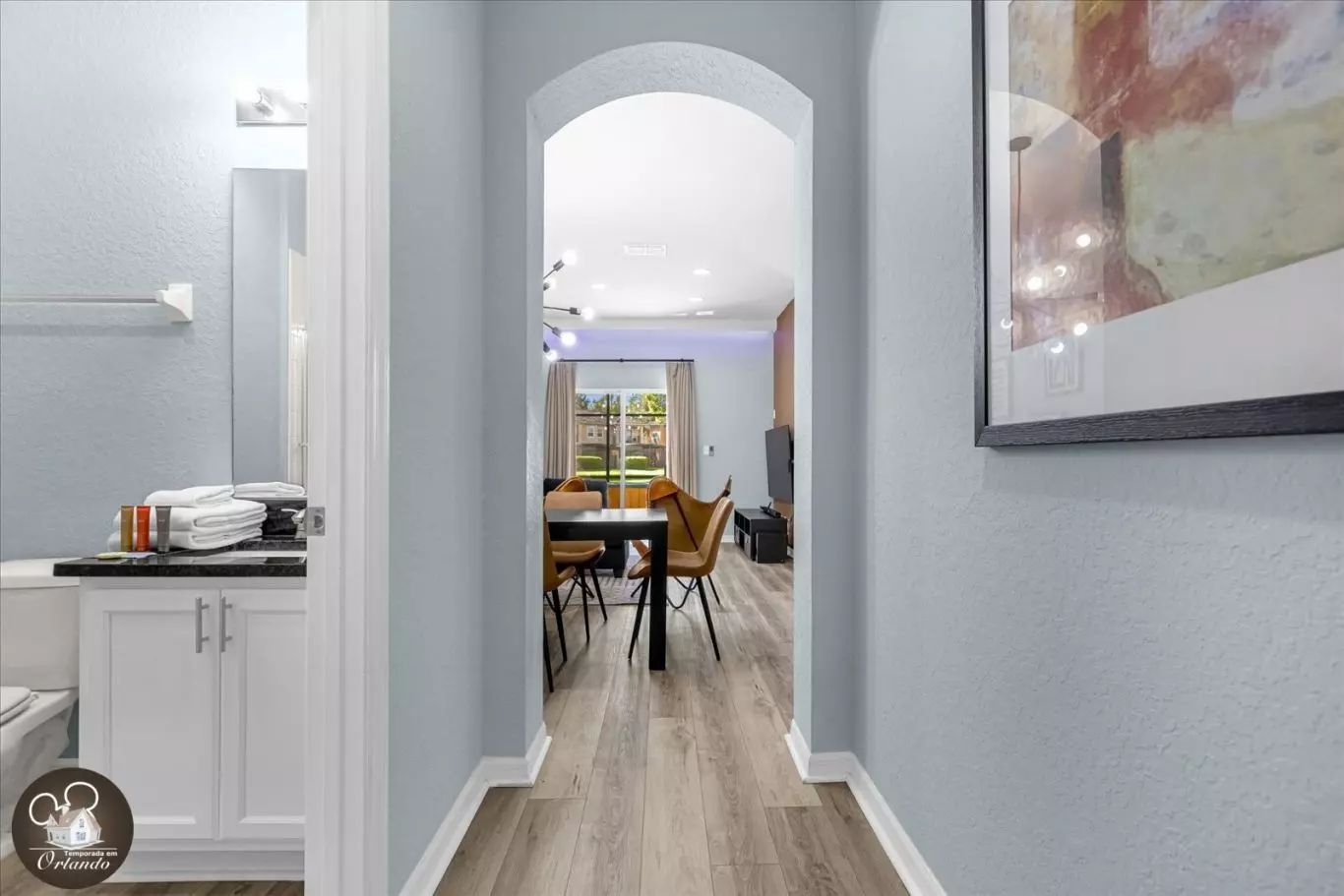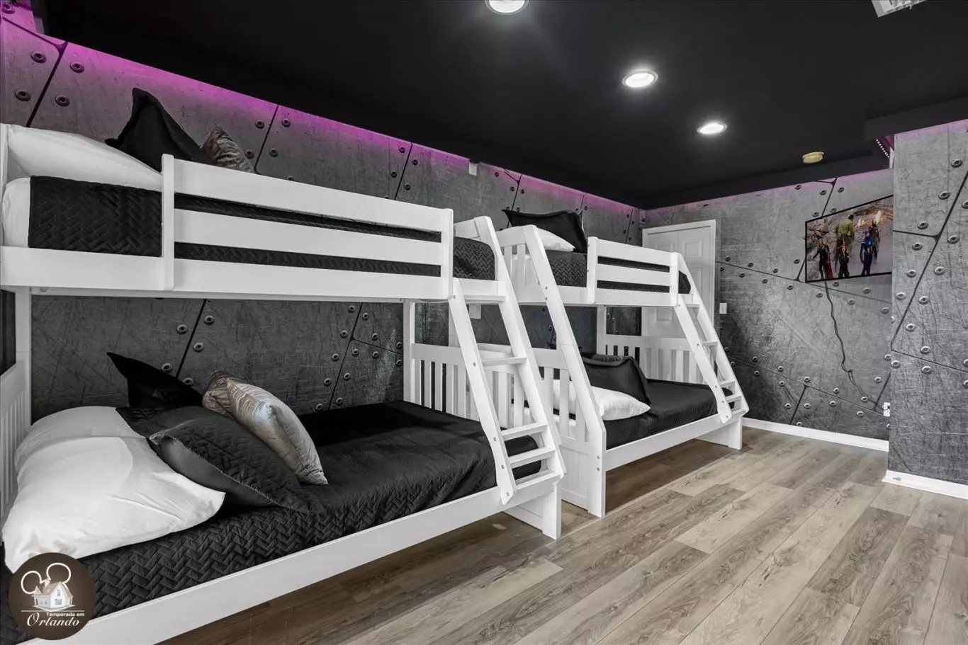 O local era muito perto dos parques da Disney, levamos apenas cerca de 15 ou 20 minutos e um preço muito razoável. Foi tão bom poder ficar em um só lugar com nossa família, e as crianças adoraram a iluminação LED no beliche. Tinha muito do que precisávamos para uma estadia de 5 dias.