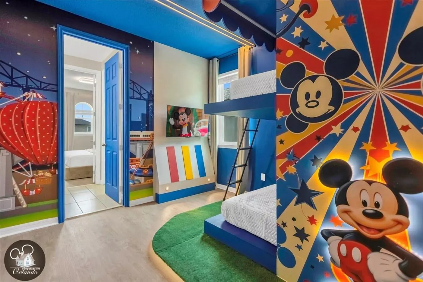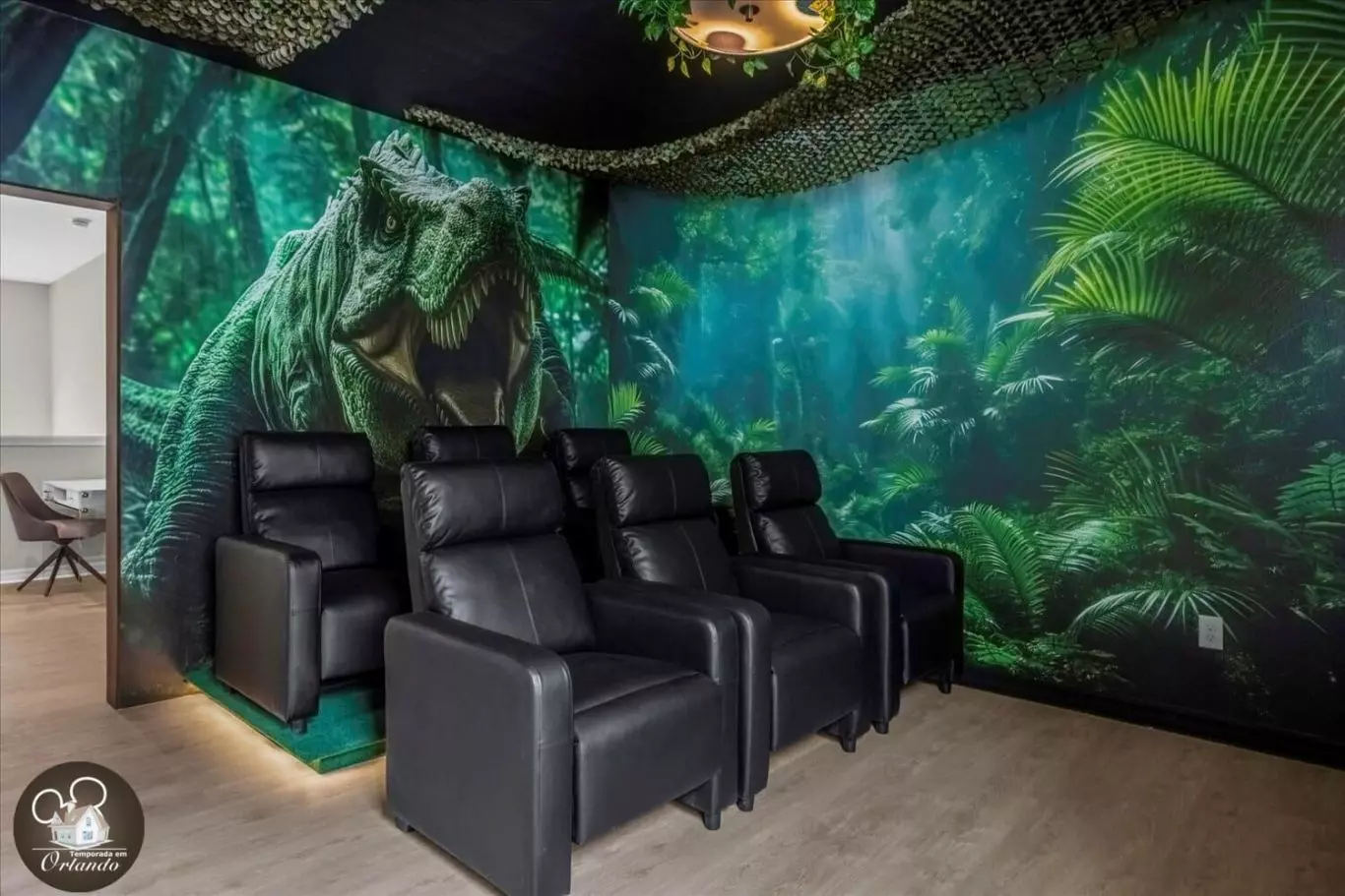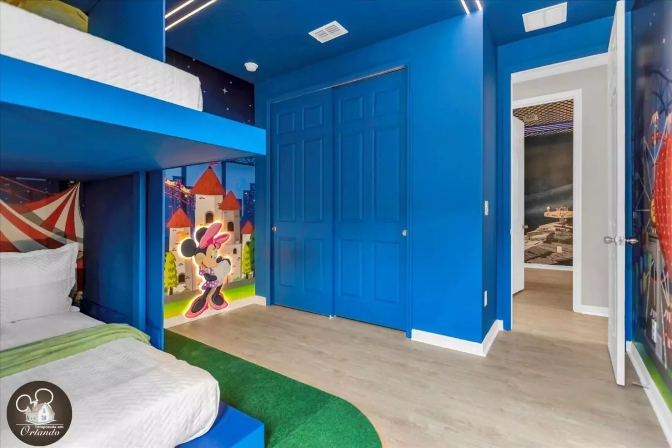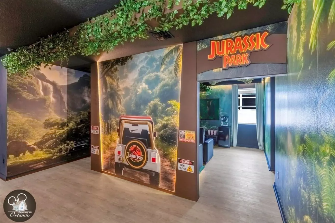Esta casa era muito legal, é uma grande opção com quartos temáticos muito interessantes! O cinema do parque Jurassic foi incrível! Meus filhos adoravam a sala de jogos, a sala do Mickey e as estrelas. Ficamos aqui por 5 dias e adoramos! No entanto, pensei que o berço ficaria em um dos quartos das crianças e não cabe na porta, por isso, se você quiser que seu bebê durma em seu quarto, traga um pack n play.