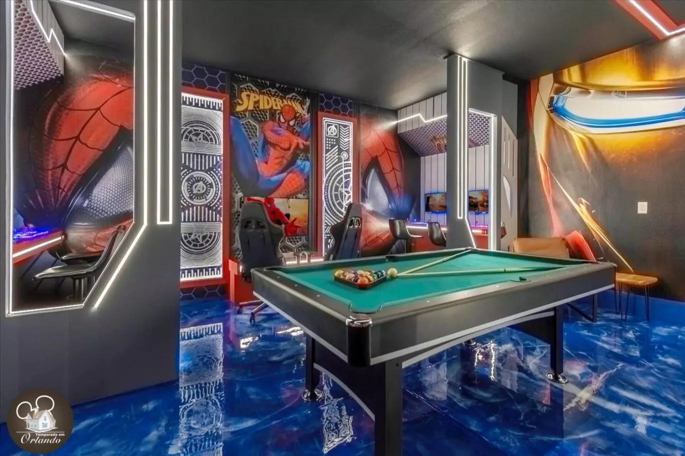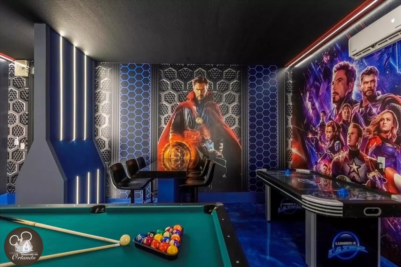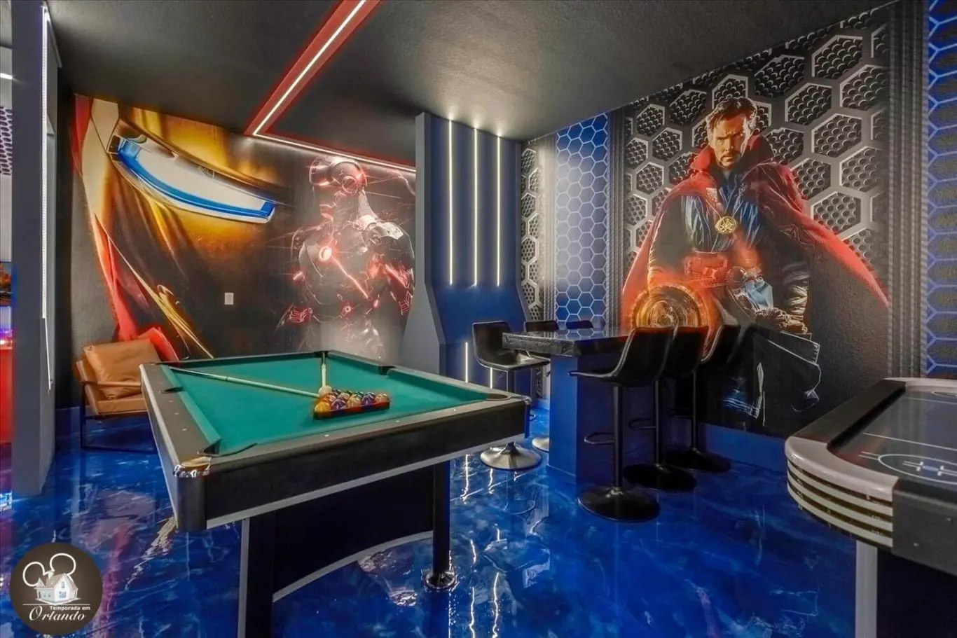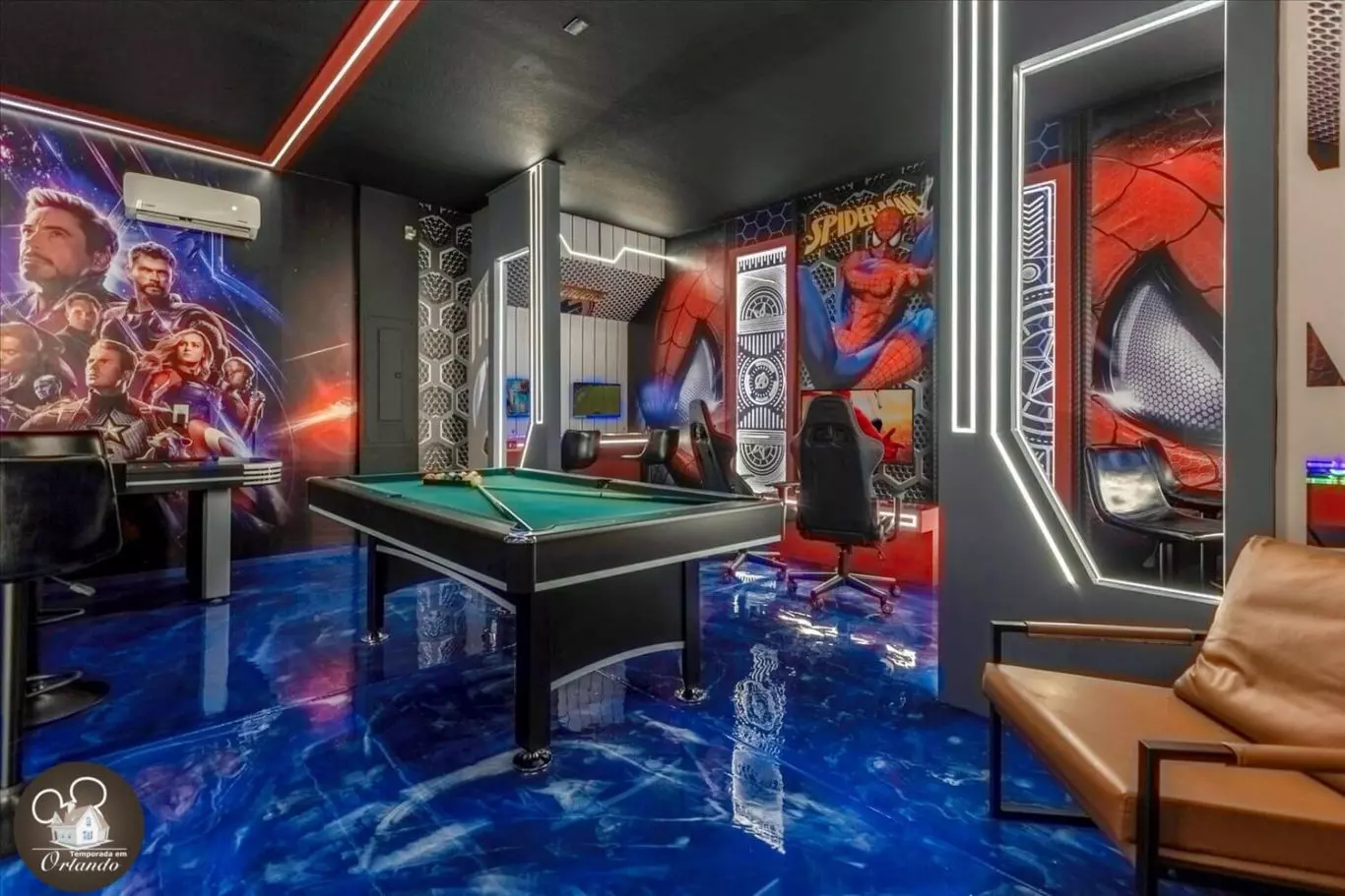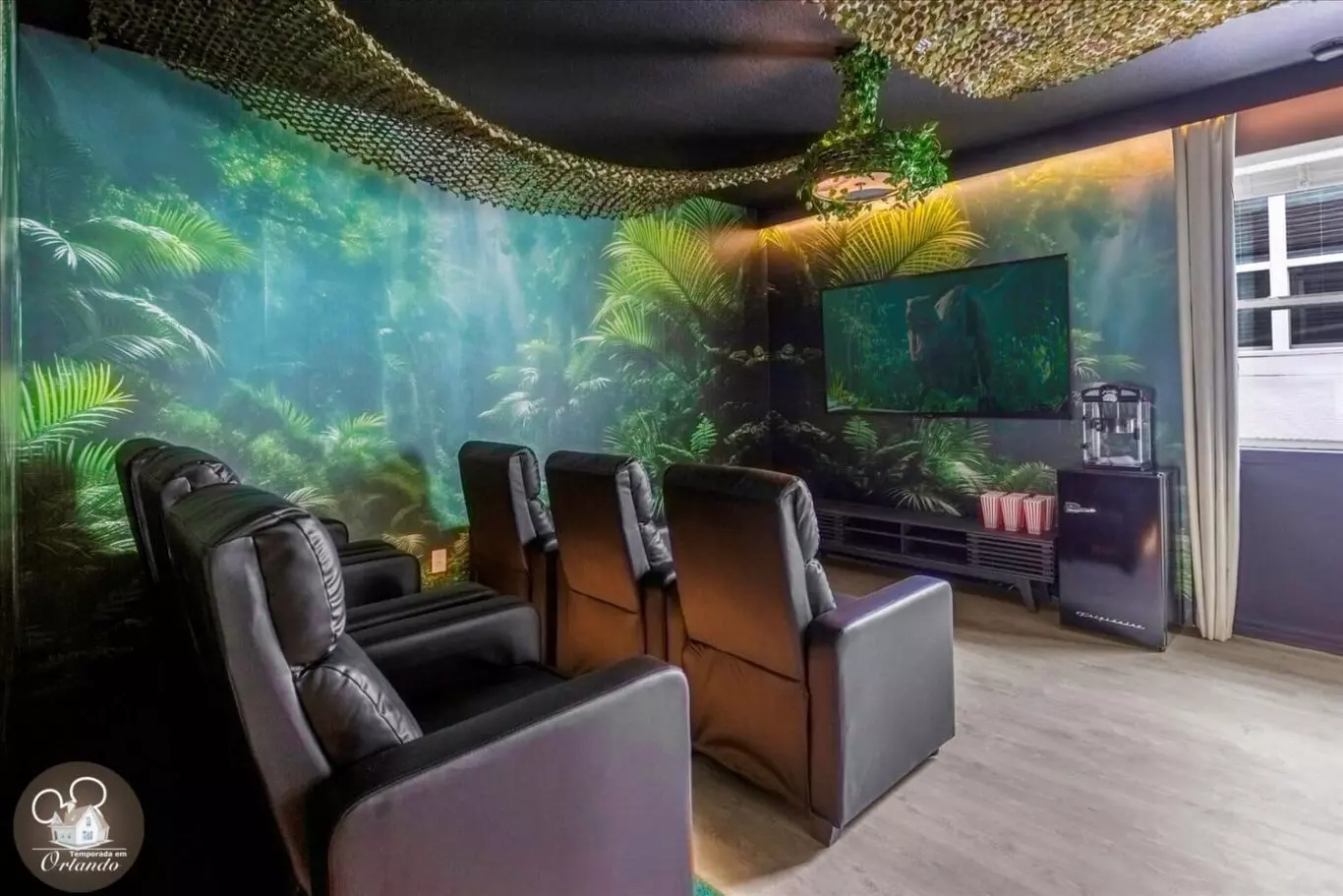 Se você está procurando umas férias relaxantes com tudo o que precisa, este é o lugar. Pagamos o extra para aquecer a piscina, e foi perfeito! A sala de jogos era um momento interminável de diversão. Havia uma mesa de bilhar, uma mesa de air hockey e 5 estações de jogos. Na área de estar principal, havia uma abundância de assentos confortáveis. Havia assentos para pessoas mais do que suficientes para comer nas mesas de jantar e na ilha da cozinha. A sala de cinema tem capacidade para 6 pessoas e foi extremamente legal em sua decoração. Os 4 quartos temáticos foram feitos muito bem. Os outros quartos estavam muito bem decorados. Recomendamos esta acomodação e a equipe como anfitrião.