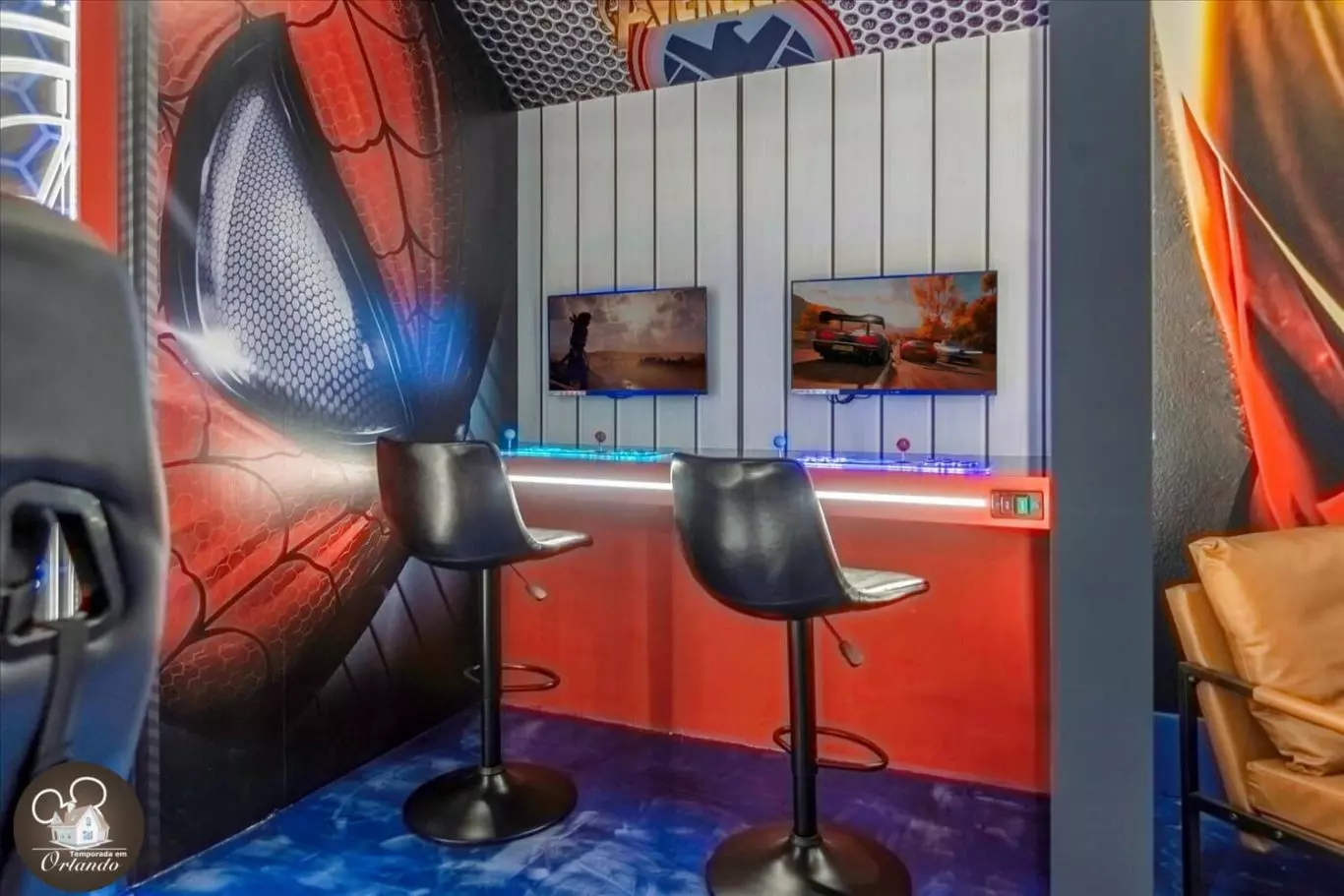 Tivemos uma estadia incrível! A casa é espaçosa e bem projetada, tornando-a perfeita para famílias com crianças. Tudo estava impecável na chegada, e a cozinha estava totalmente abastecida com tudo o que precisávamos para a nossa estadia. As crianças adoraram especialmente os quartos temáticos e o fliperama, que foram preparados perfeitamente para diversão e entretenimento. A localização também era ótima - não muito longe dos parques, tornando-a conveniente para viagens de um dia. A equipe foi muito ágil e prestativa durante toda a nossa estadia. Definitivamente recomendaríamos esta casa a outras pessoas e adoraríamos ficar novamente no futuro!