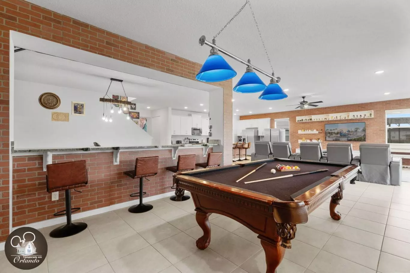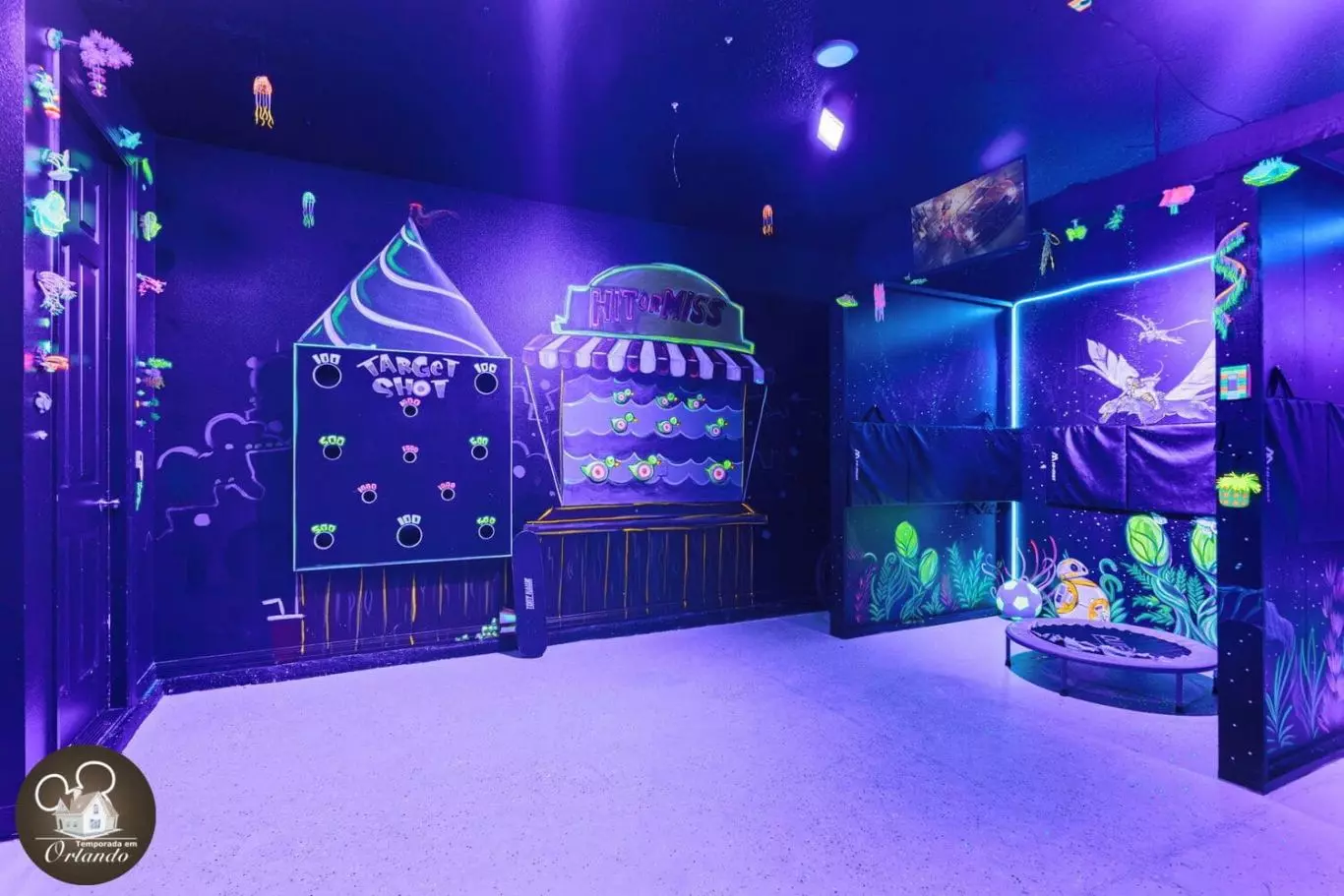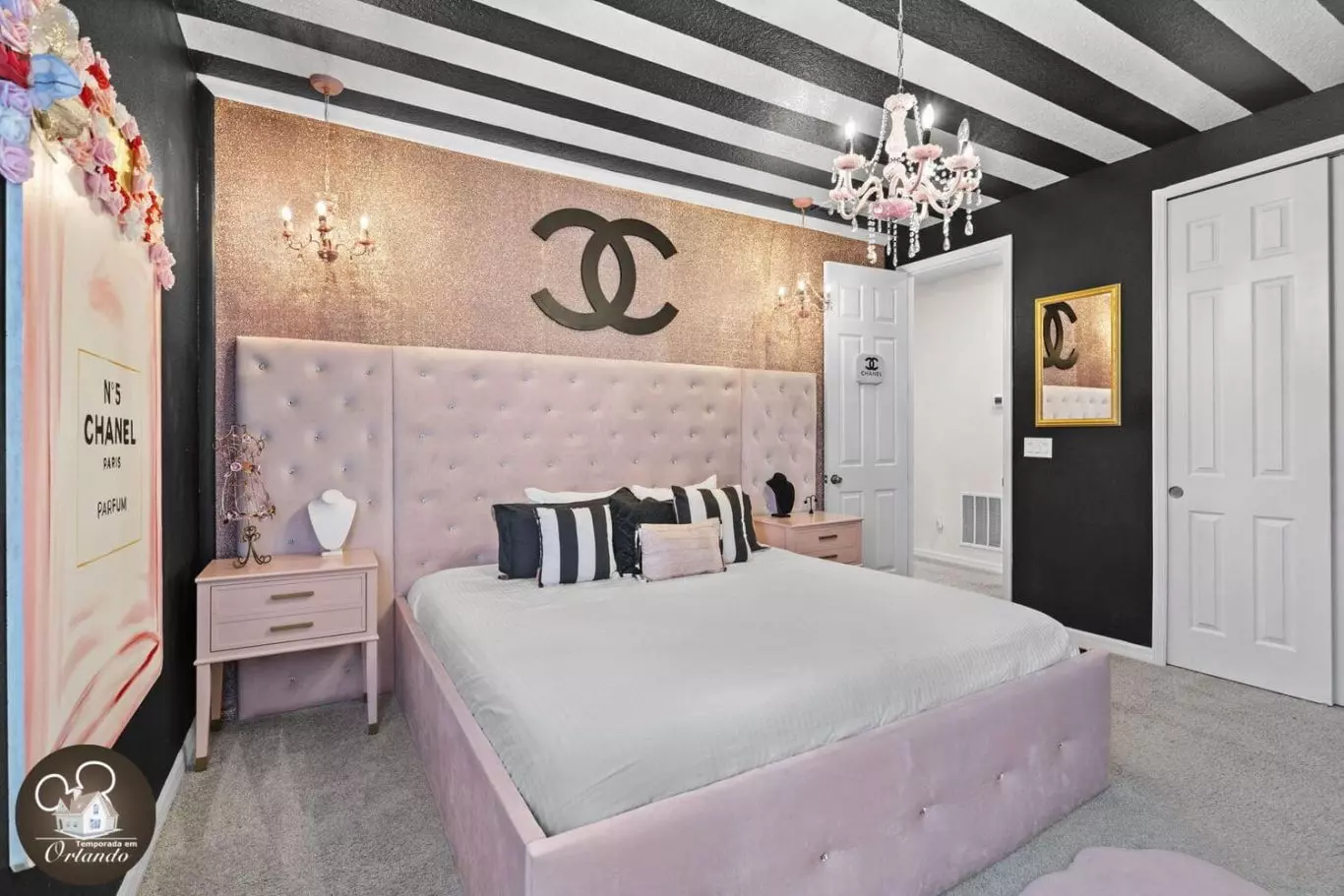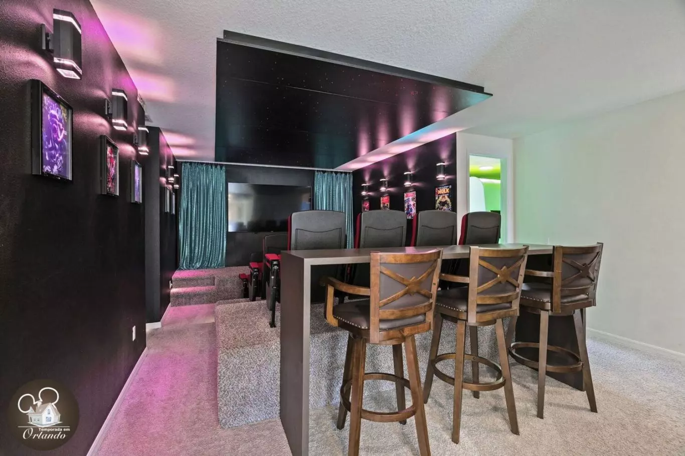 As fotos publicadas são ótimas, mas pessoalmente, UAU! Este lugar foi realmente incrível. Deu uma sensação de férias, mas também me senti em casa. Quartos: Os diferentes quartos temáticos foram incríveis! Sugiro "se vestir bem" e tirar fotos nos quartos LV e Chanel. A área de cinema no andar de cima foi fantástica! A única área para melhoria é a limpeza da roupa de cama. Havia várias camas com lençóis que tinham manchas visíveis e uma cama que tinha uma mancha e cheiro de urina fresca. Abordamos isso com o anfitrião. Ele respondeu imediatamente! Ele até disse que alguém poderia ser enviado no dia seguinte para resolver o problema. Excelente comunicação. Cozinha: Adorei que havia 2 geladeiras/ freezers. Despensa de bom tamanho. Muito limpa. Adorei a cesta de presentes de lanches fofa. Sala de jogos: as crianças adoraram a iluminação do quarto. Resort: sala de jogos disponível. Ótima piscina (a piscina na casa também é incrível se você quiser evitar as pessoas no resort). Área de brinquedos com água para crianças. Simulador de surfe disponível. Eu recomendo muito reservar esta acomodação!