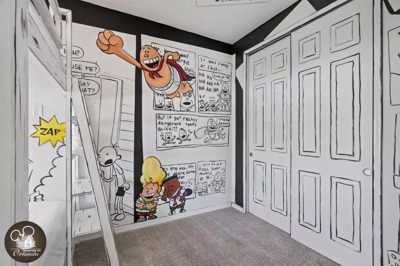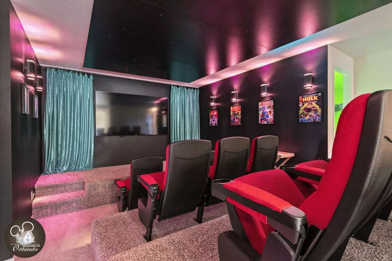 As crianças adoraram os diferentes quartos temáticos. Muito espaço e o cinema é ótimo para assistir TV. Perto o suficiente das atrações da Disney. Você pode ver todo o esforço colocado no espaço com todos os temas.