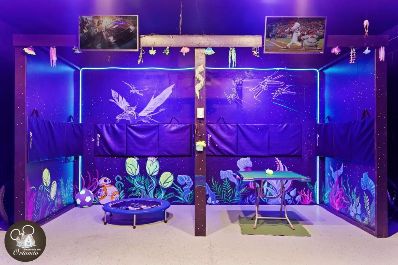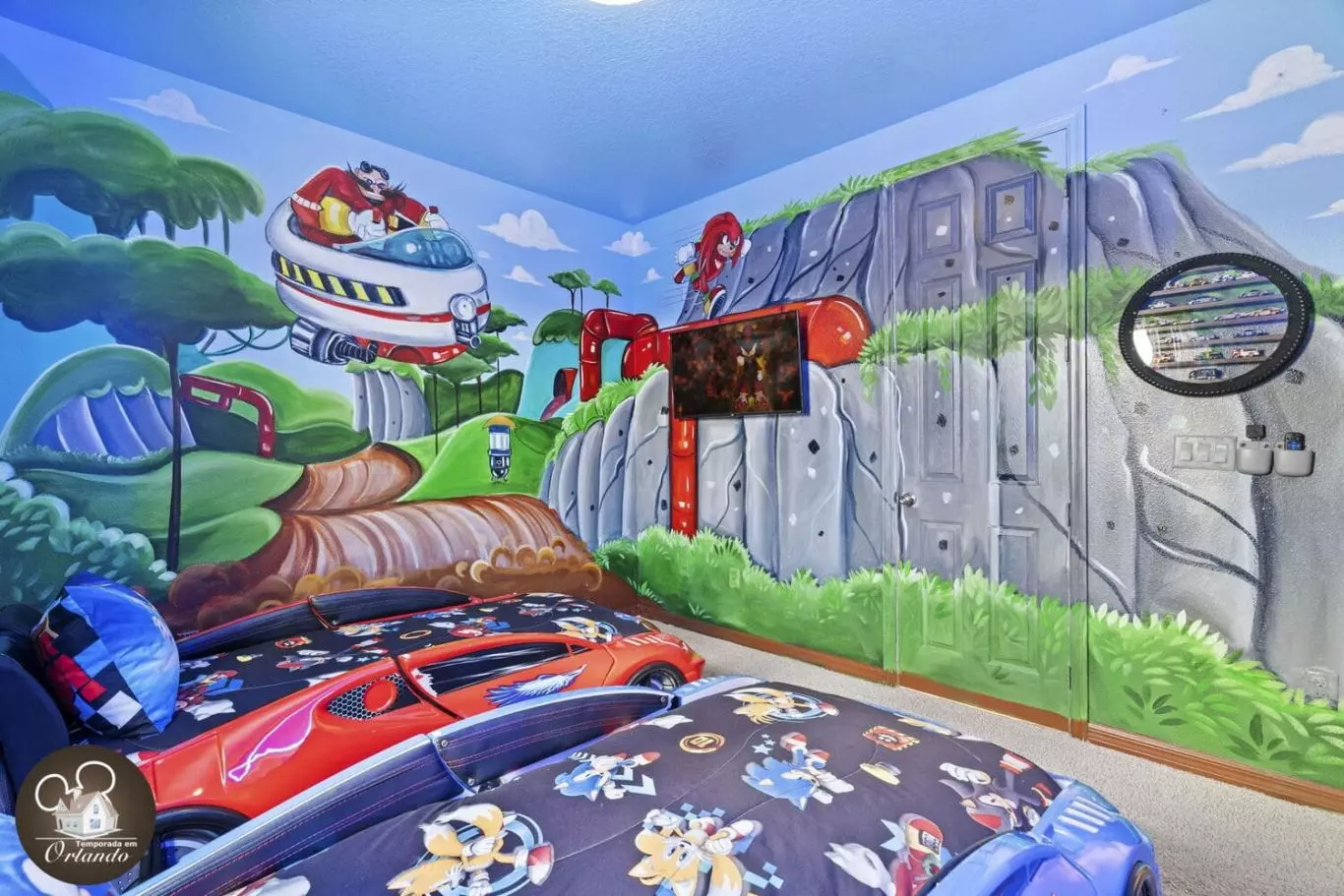 Excelente para uma família grande. Adorei o quarto temático e a garagem da sala de jogos.