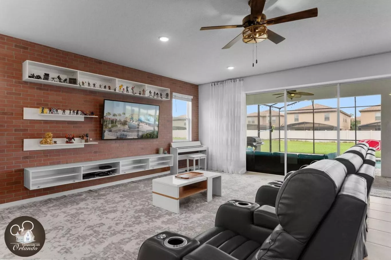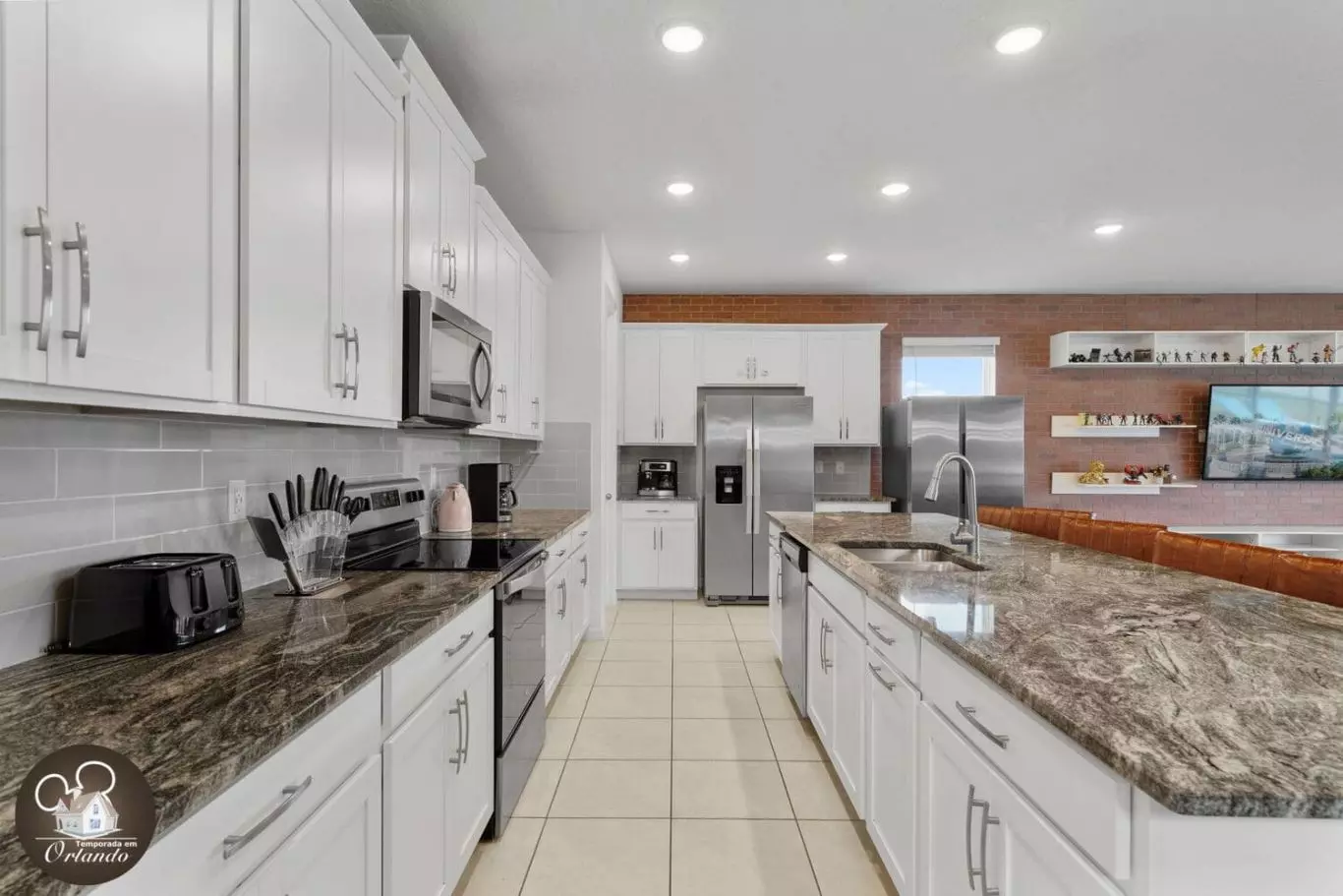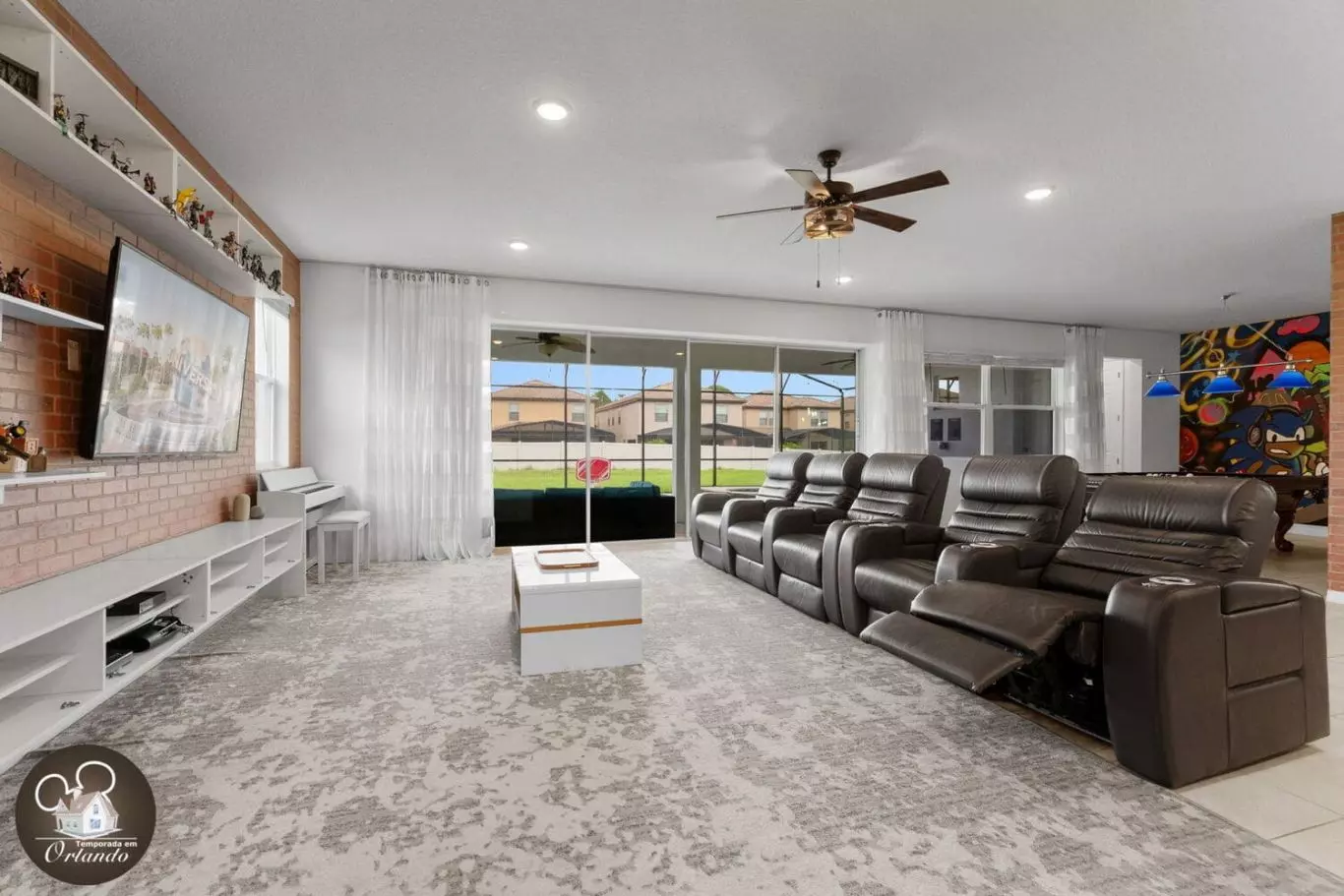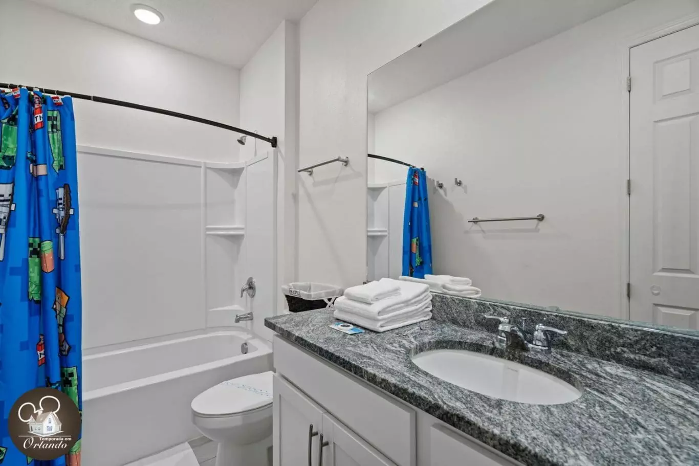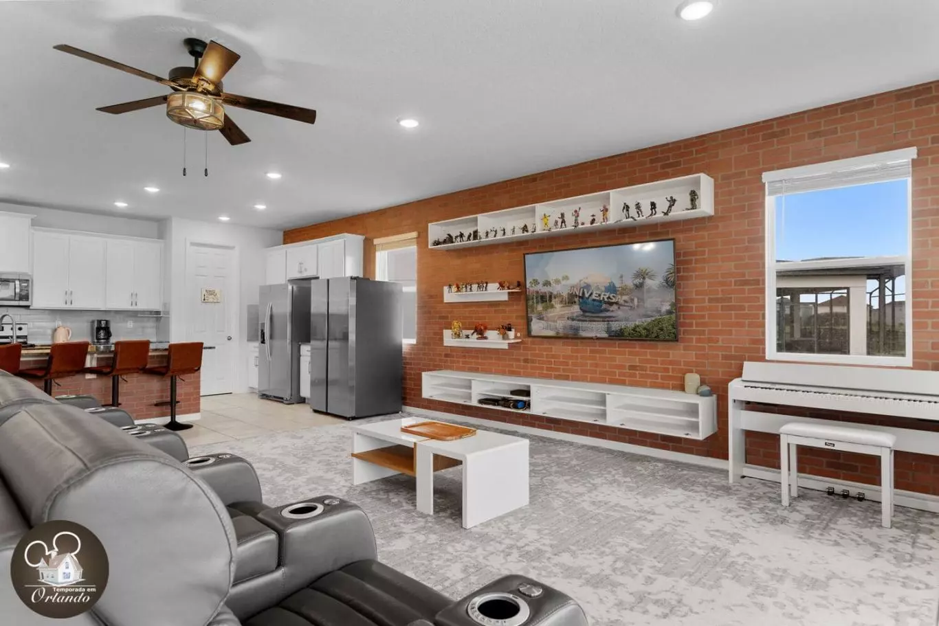 Recentemente, fiquei em Orlando, e realmente superou minhas expectativas para férias em família, especialmente para aqueles que planejam uma viagem para a Disney. A casa era incrivelmente espaçosa e perfeita para a nossa grande família, com todos os itens essenciais de cozinha que precisávamos para preparar refeições e lanches. Ter duas geladeiras foi um divisor de águas, facilitando o armazenamento de alimentos para a nossa estadia prolongada. O layout da casa era ideal, com muitos quartos para todos se espalharem confortavelmente, cada um decorado com bom gosto com um tema divertido da Disney. Os banheiros estavam convenientemente localizados, garantindo que ninguém estivesse esperando na fila depois de um longo dia nos parques. Um dos maiores destaques foi a localização central da casa. Estar a quilômetros de distância da Disney foi fantástico, e também encontramos uma mercearia local nas proximidades, facilitando o estoque de suprimentos. As acomodações para sentar também foram muito bem pensadas. Havia lugares para crianças e adultos relaxarem e descontrair!