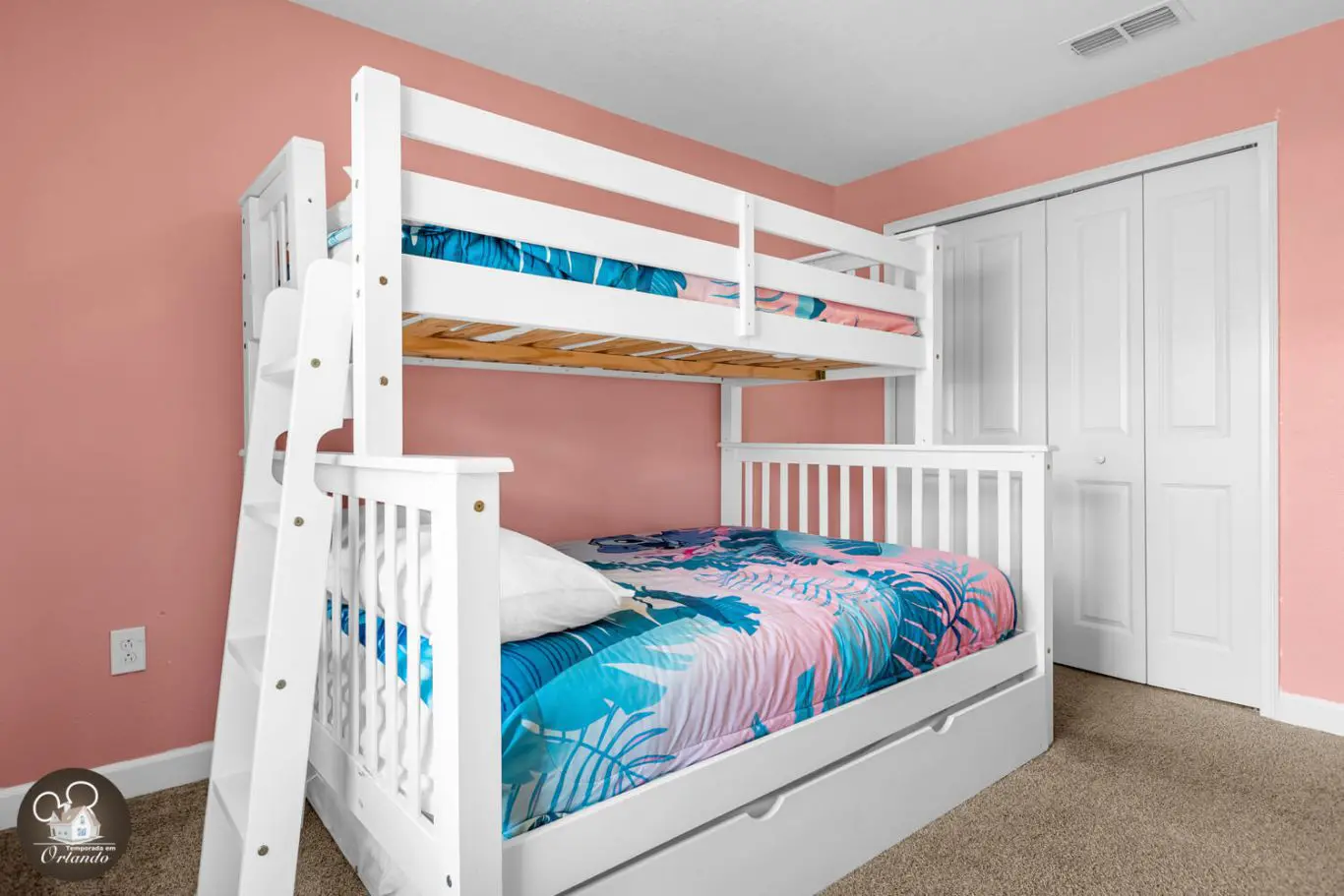 • Quarto 4: 1 beliche com cama de casal na parte inferior e cama de solteiro acima