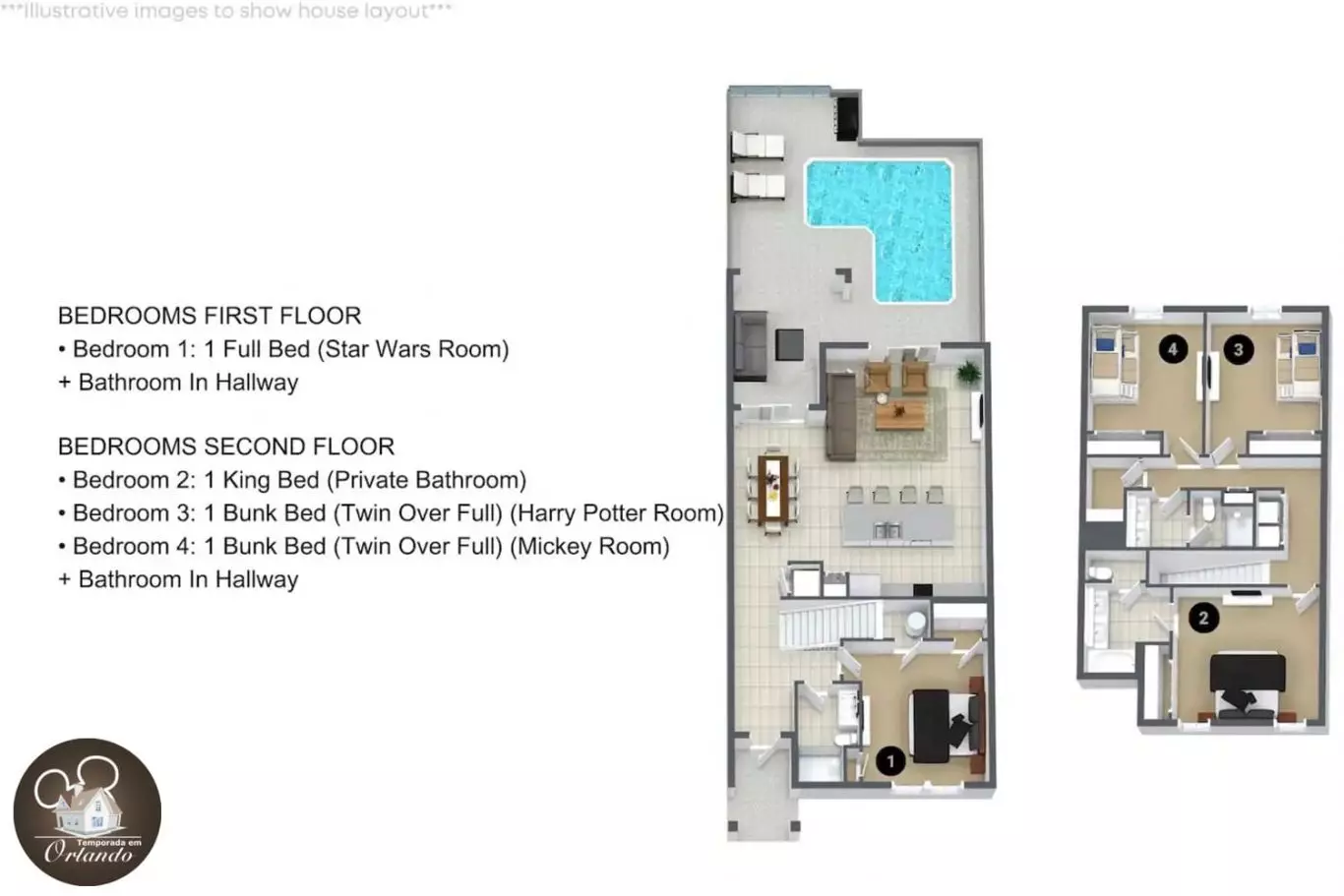 Casa de Temporada com 4 Quartos e Piscina Privativa – Perto da Disney