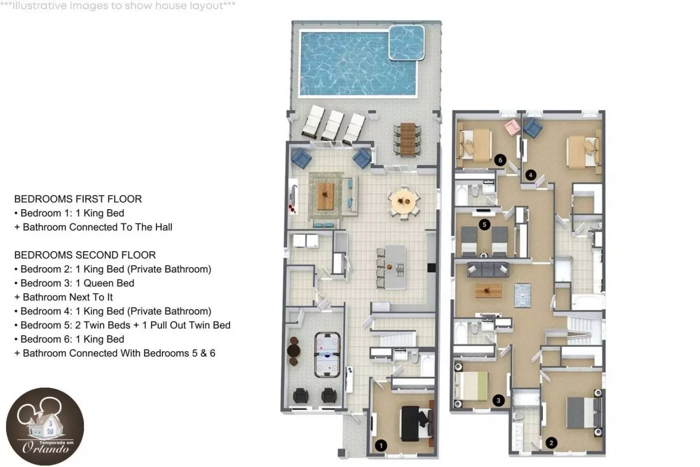 6 Quartos | Acomoda até 12 Pessoas | Piscina com Jacuzzi | Sala de Descanso | Salão de Jogos