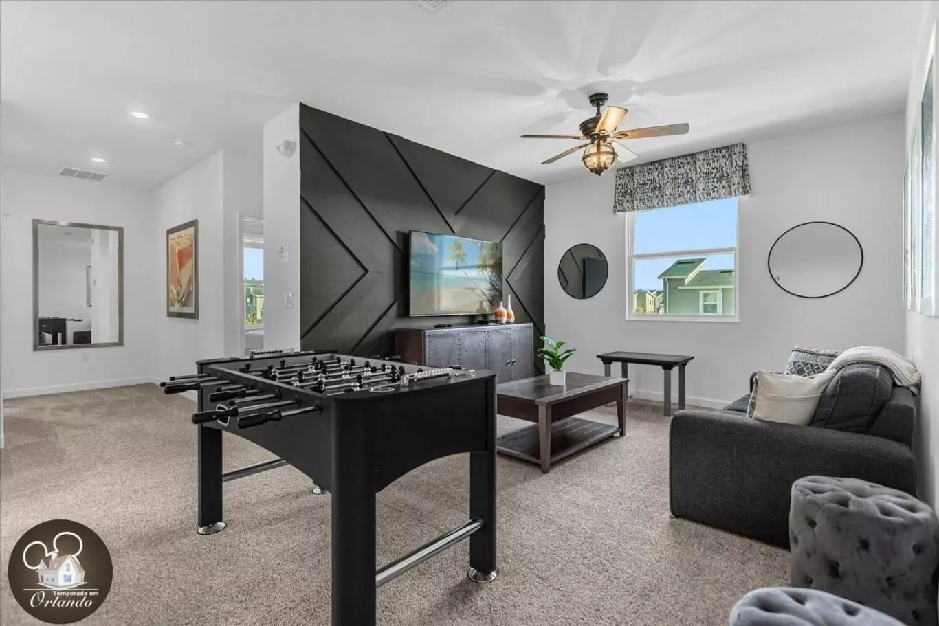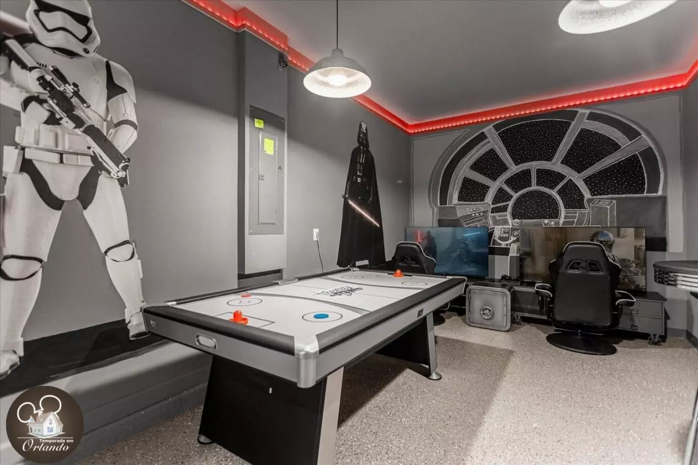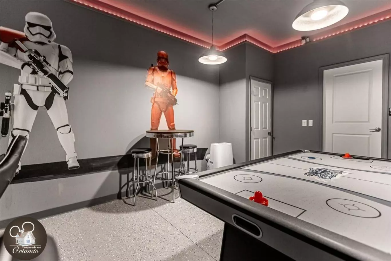 Nós gostamos da nossa estadia nesta bela casa! Ficamos por 7 noites. Na verdade, nossa reserva original foi de 6 noites, mas decidimos ficar mais uma noite. Prolongar a estadia foi muito fácil. A comunicação foi ótima. A equipe responde dentro de 1 hora. Meus filhos gostaram da sala de jogos, é claro, da piscina, e ficaram agradavelmente surpresos com a mesa de jogo eletrônica no loft do andar de cima. As camas e travesseiros eram confortáveis! A casa estava muito limpa! Cada chuveiro tinha dispensadores cheios de sabonete para o corpo e xampu, mas ainda trouxemos os nossos. A cozinha tem tudo o que você precisa. Somos uma família de 7 pessoas e um bebê. Cada criança tinha seu próprio quarto. O mestre tinha um pack n play para o nosso bebê. Eles também têm uma cadeira alta. Mas talvez traga outra cadeira de bebê se seu bebê for muito pequeno ou jovem para se sentar em uma cadeira alta. A viagem até os parques temáticos da Disney é de cerca de 15 a 20 minutos. A casa fica a cerca de 5 minutos da faixa principal, onde há muitos restaurantes, lojas e Target. Definitivamente ficaríamos novamente!
