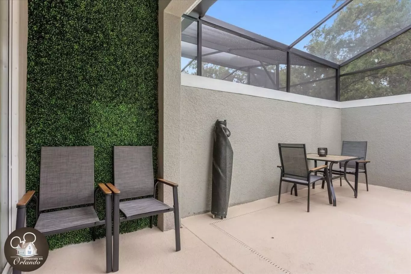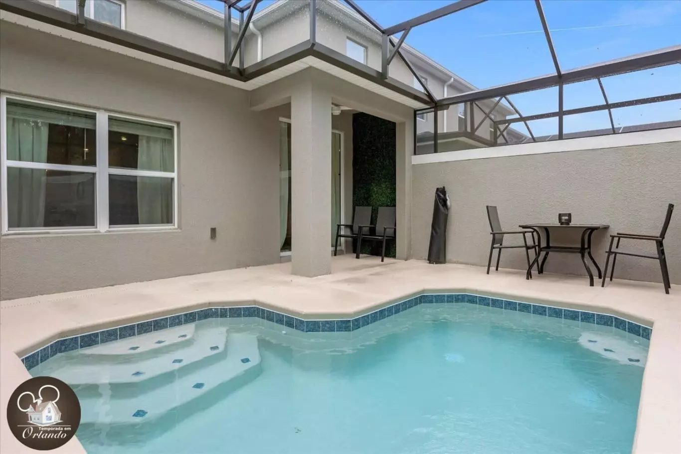 A área externa é perfeita para relaxar e curtir o clima da Flórida. Com piscina privativa e espreguiçadeiras, você terá à disposição um espaço exclusivo para lazer após os passeios pelos parques.