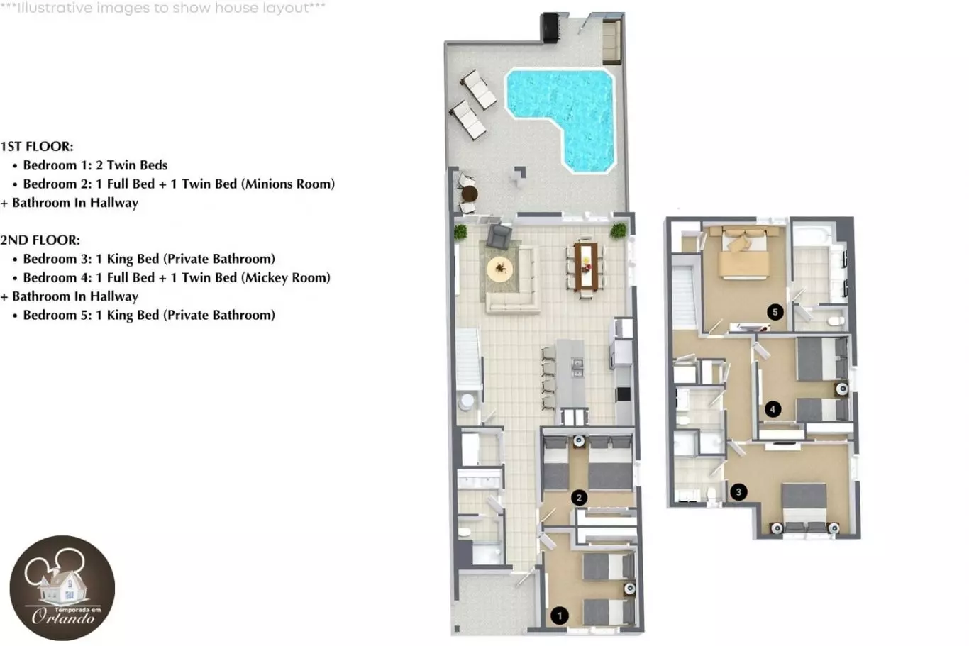 Esta casa de temporada em Orlando é a escolha ideal para quem busca conforto, espaço e praticidade a poucos minutos da Disney. Localizada no desejado condomínio Storey Lake, a propriedade oferece ambientes amplos, piscina privativa e acomodações perfeitas para famílias grandes ou grupos de amigos.