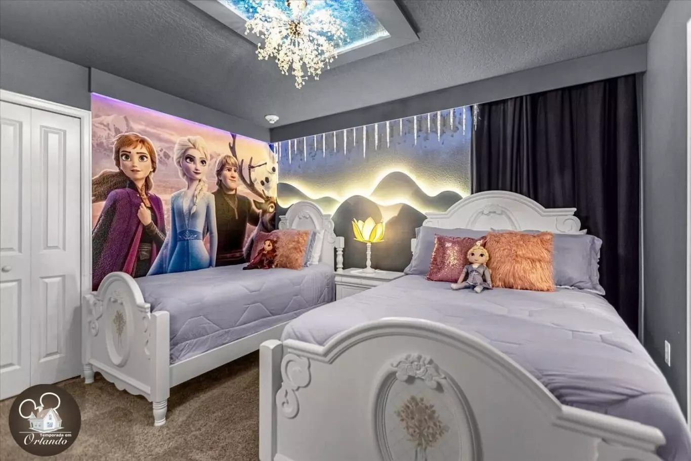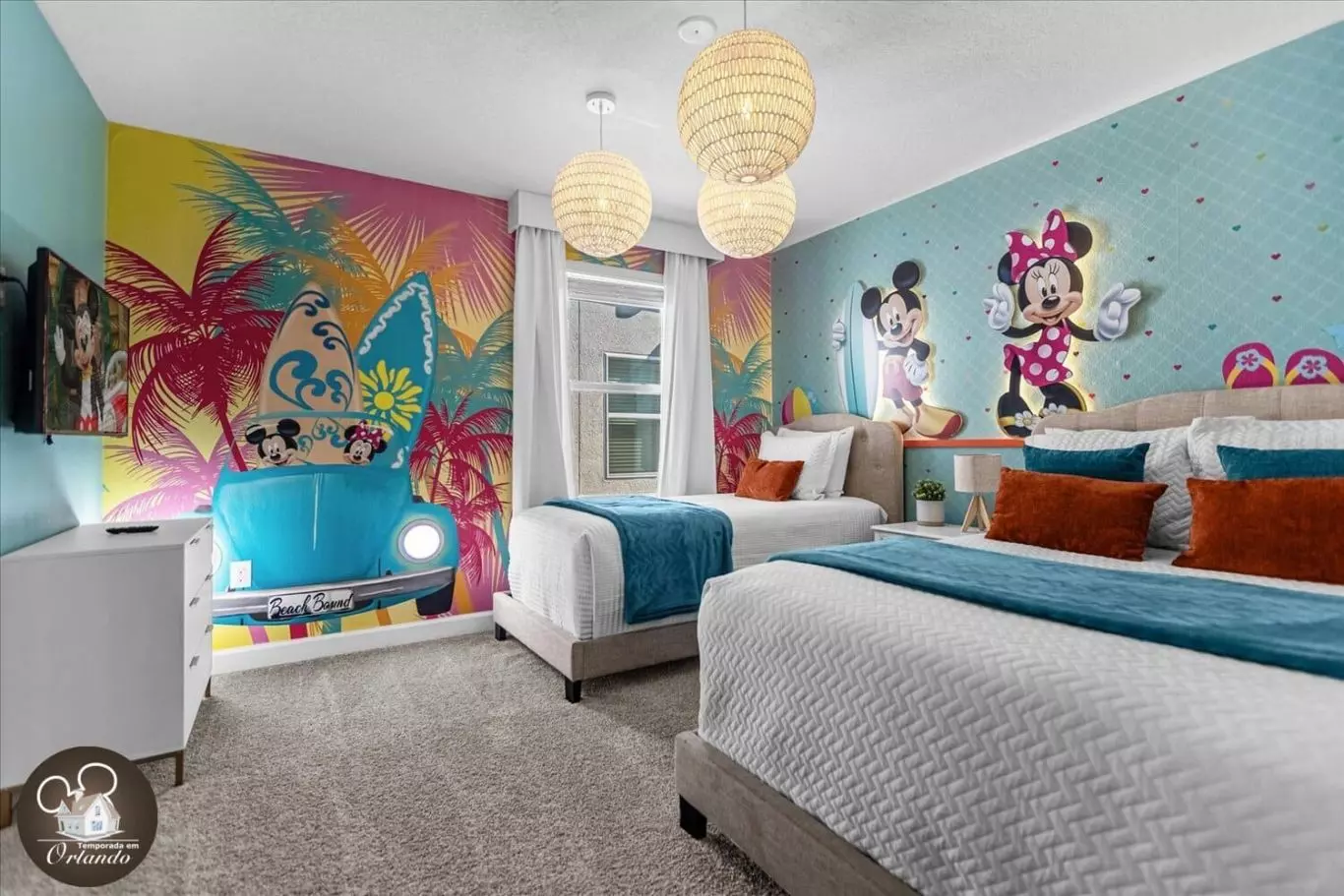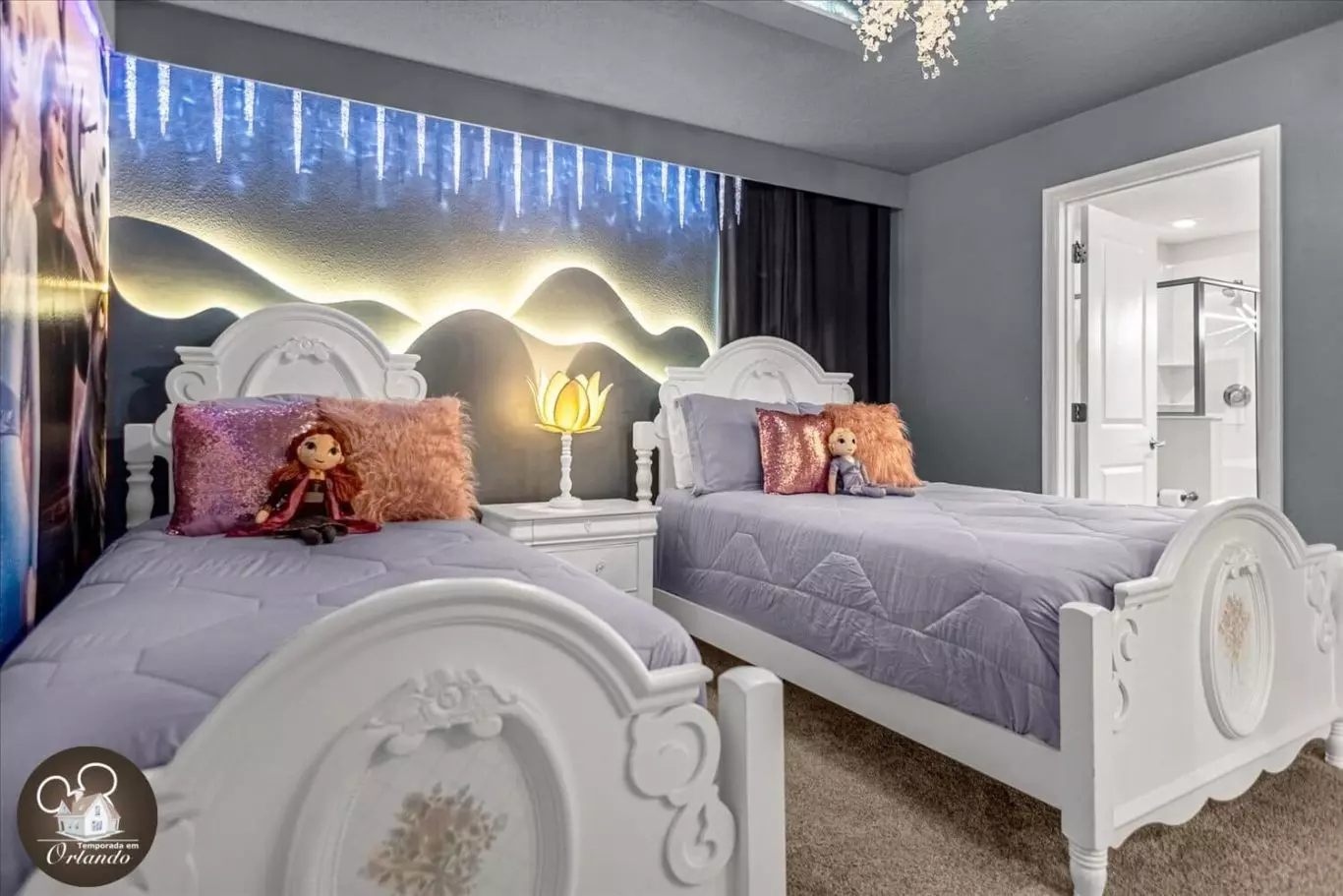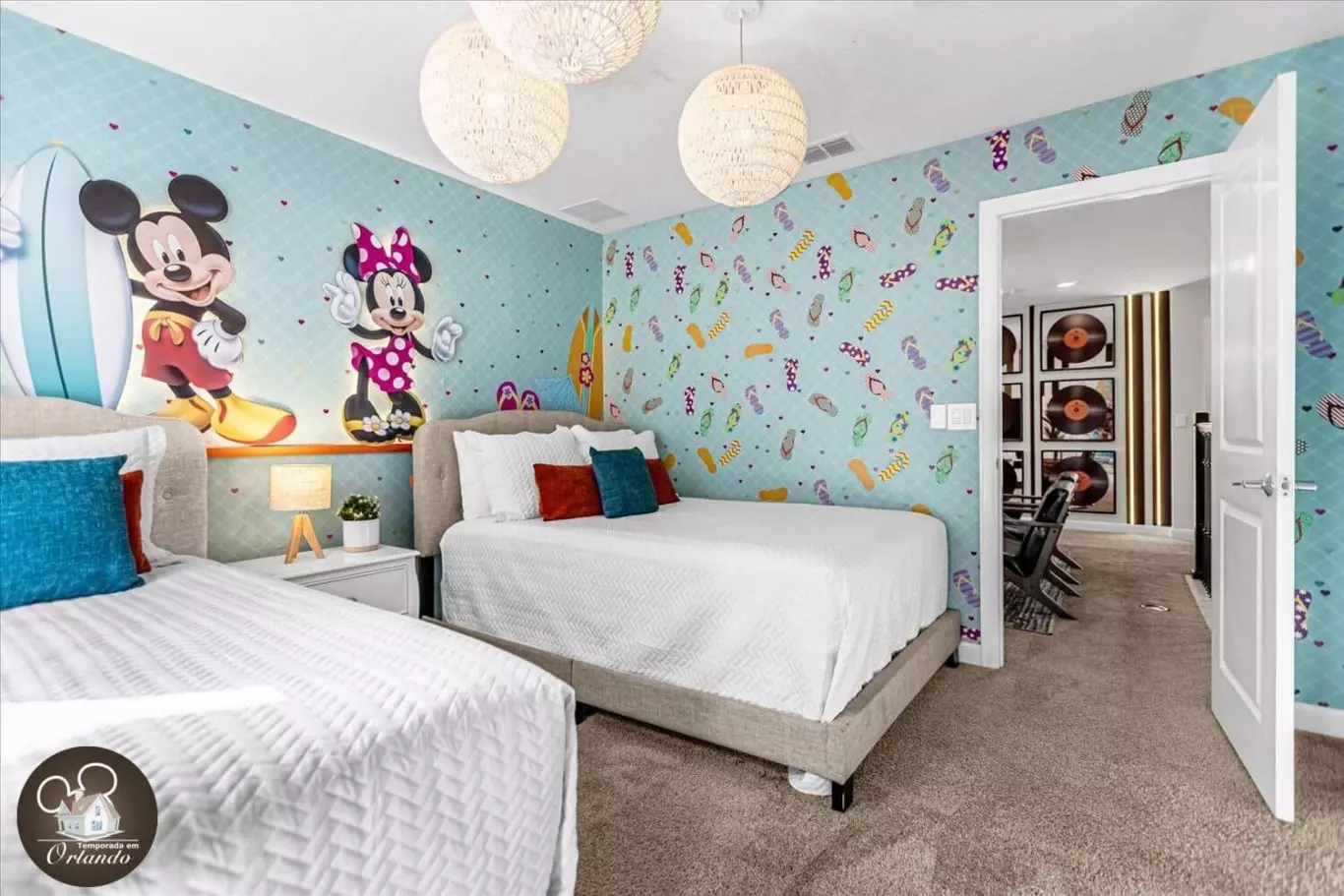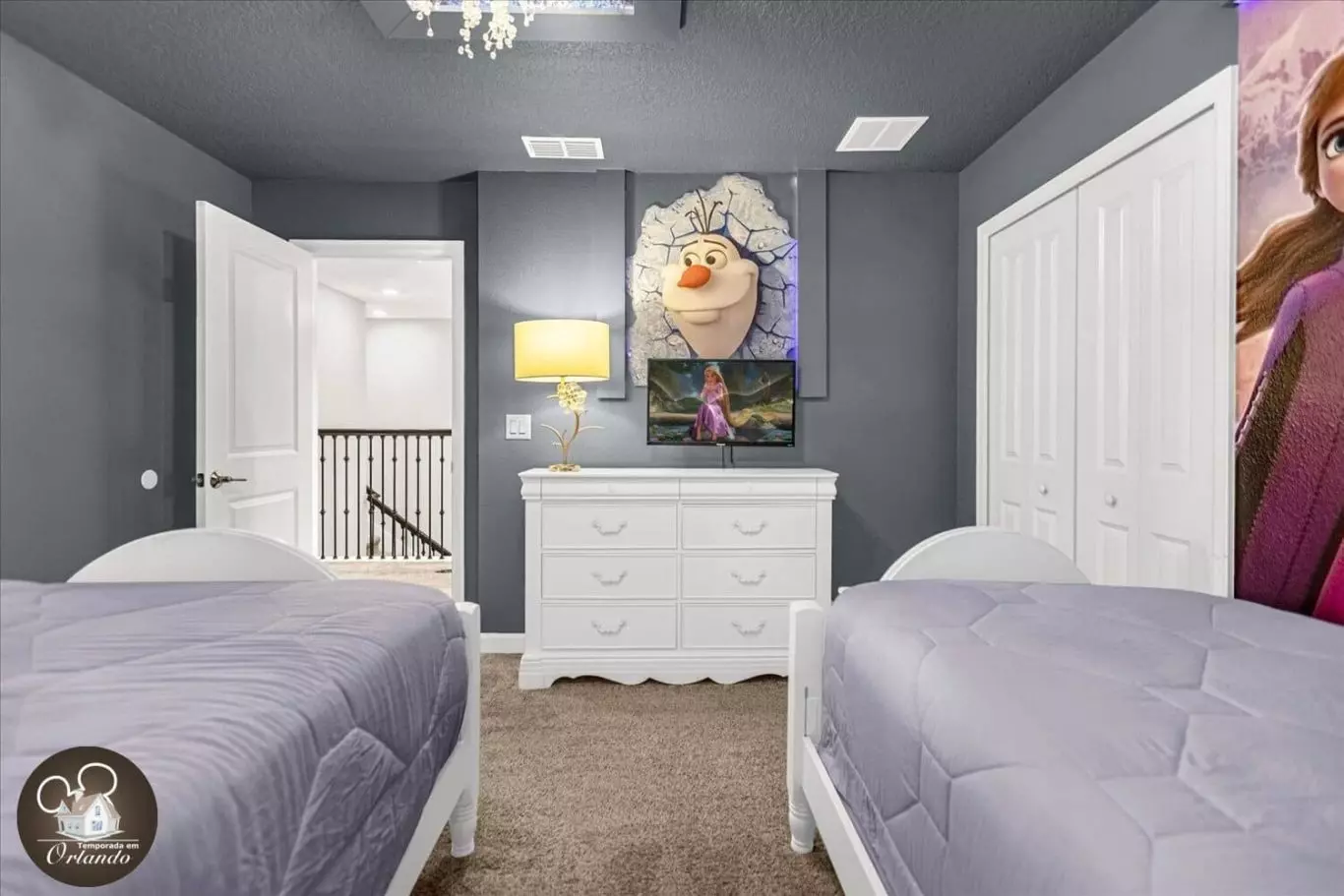 Adoramos os quartos decorados da Disney para as crianças! Tão incrível! A casa era limpa e grande para um grupo grande.