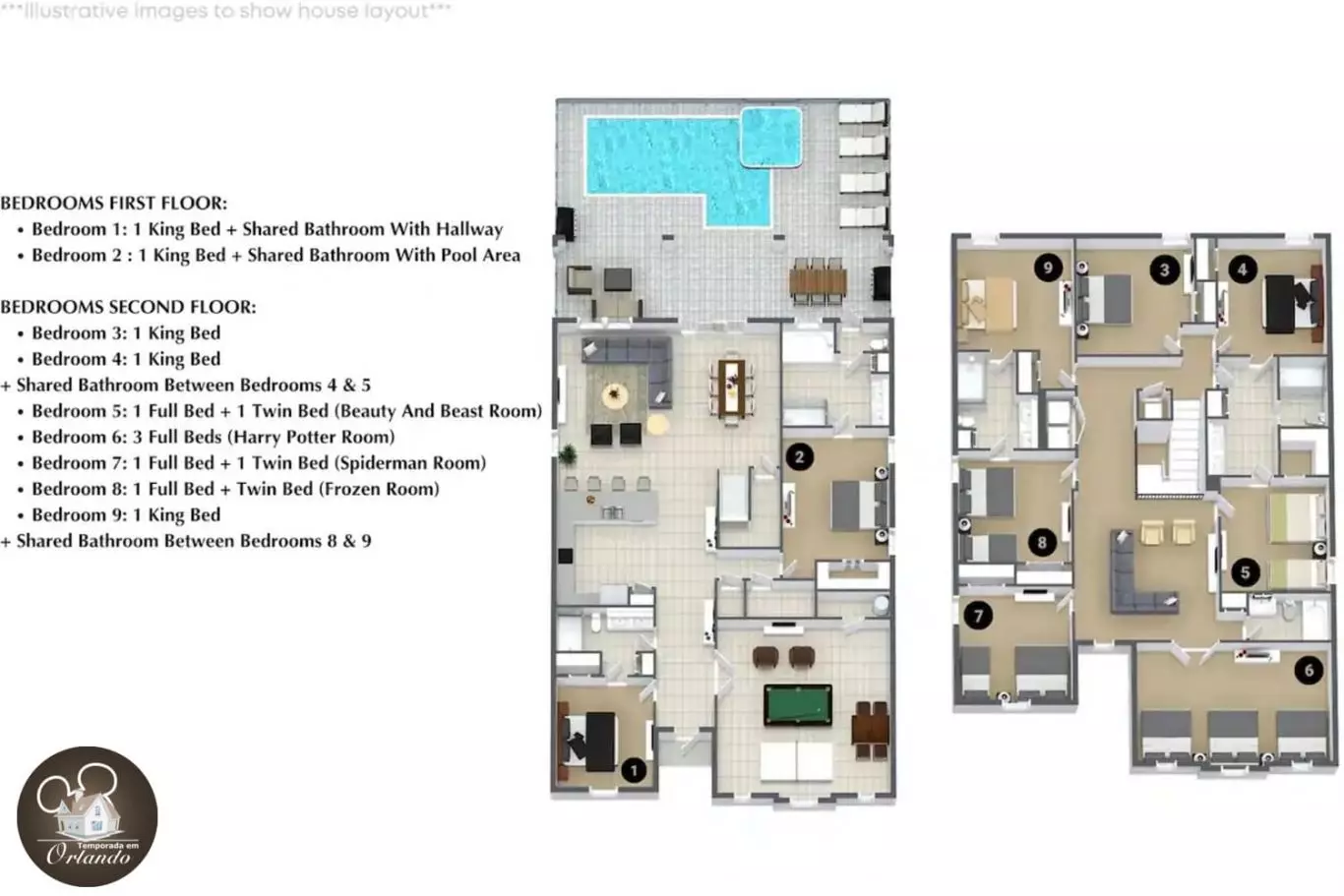 Eu poderia realmente escrever muito neste comentário. Desde o início, a equipe foi muito ágil e proativa ao nos dar todas as informações que precisávamos antes do check-in, tornando-o um processo tranquilo. A casa é linda, assim como a vizinhança. Eu até diria que parece melhor do que as fotos. Os quartos temáticos e a sala de jogos foram um sucesso entre o meu grupo. A casa estava impecável e deixou você se sentindo como se quisesse ficar para sempre. A casa era central para os parques e muitos ótimos restaurantes. A piscina era tão legal! Você não pode superar tudo o que recebe pelo preço. Recomendo vivamente que fique nesta casa a todos!