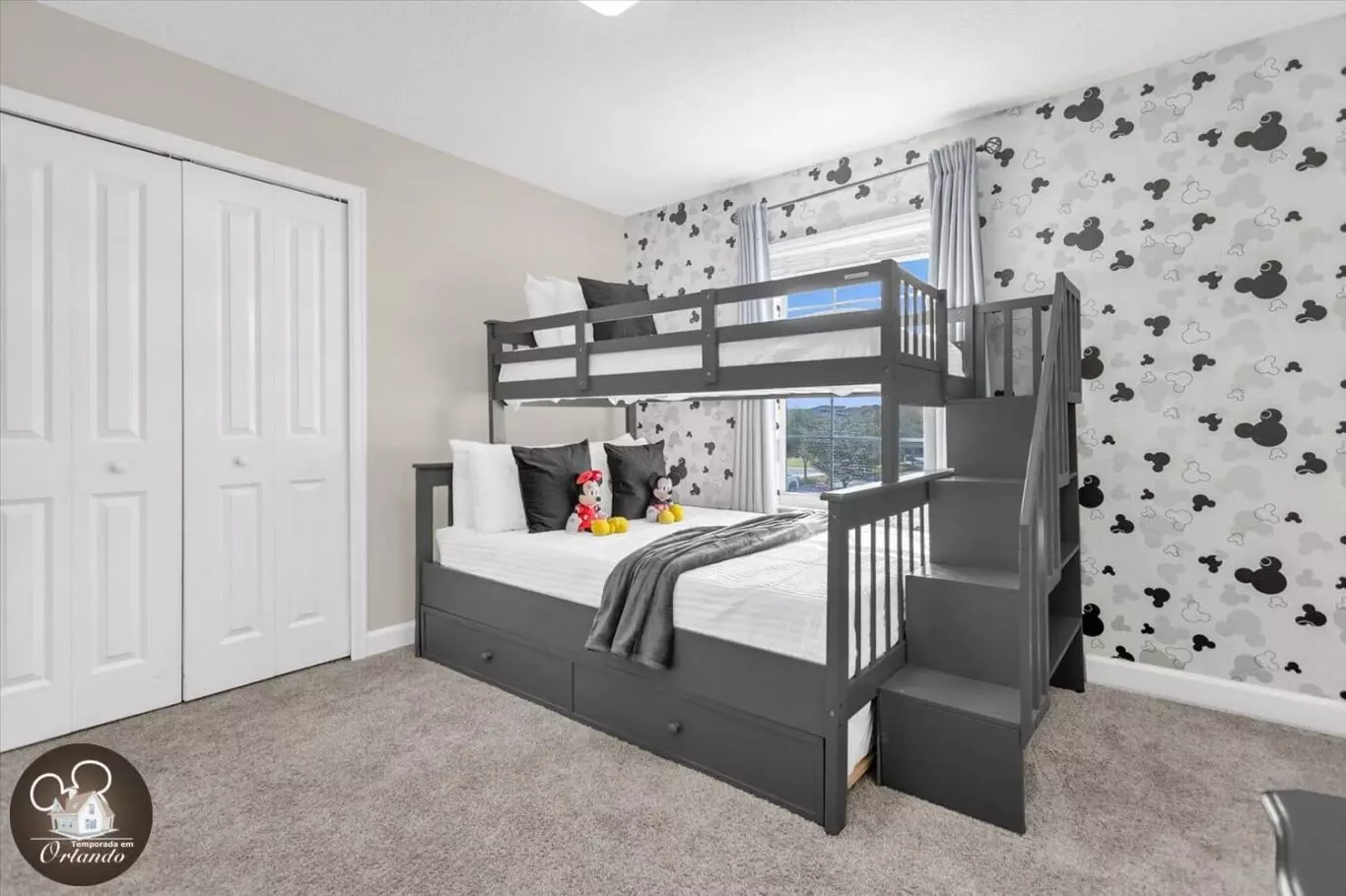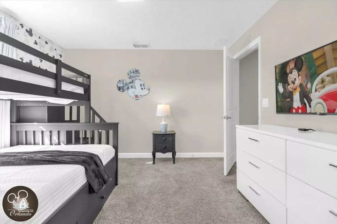 Este local fica em frente ao centro de convenções/hotel onde nos encontrávamos diariamente por uma semana! Literalmente a 4 minutos de distância ou do outro lado da rua. Éramos todos adultos, mas fizemos dar certo com o quarto das crianças. Dormi no beliche de baixo no quarto do Mickey Mouse no andar de cima. A cama era confortável e ter meu próprio banheiro no andar de cima me deixou muito feliz! Esta é a nossa segunda estadia com a equipe e nós gostamos de ambas as estadias. Dois polegares para cima!