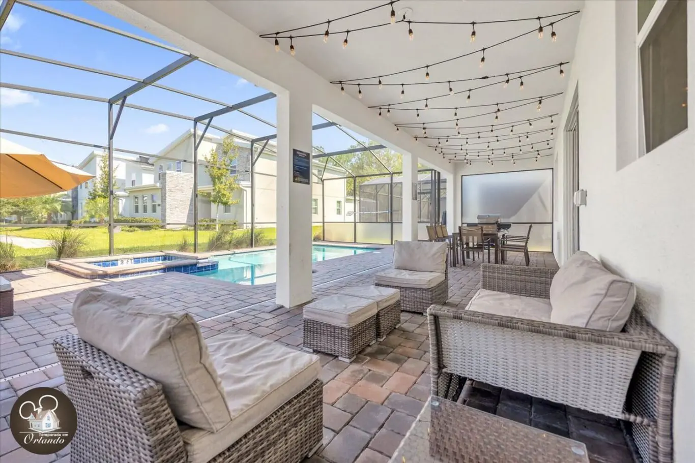 9 Quartos | Acomoda até 26 Pessoas | Sala de Cinema | Salão de Jogos | Piscina Privativa com Jacuzzi | Próxima à Disney