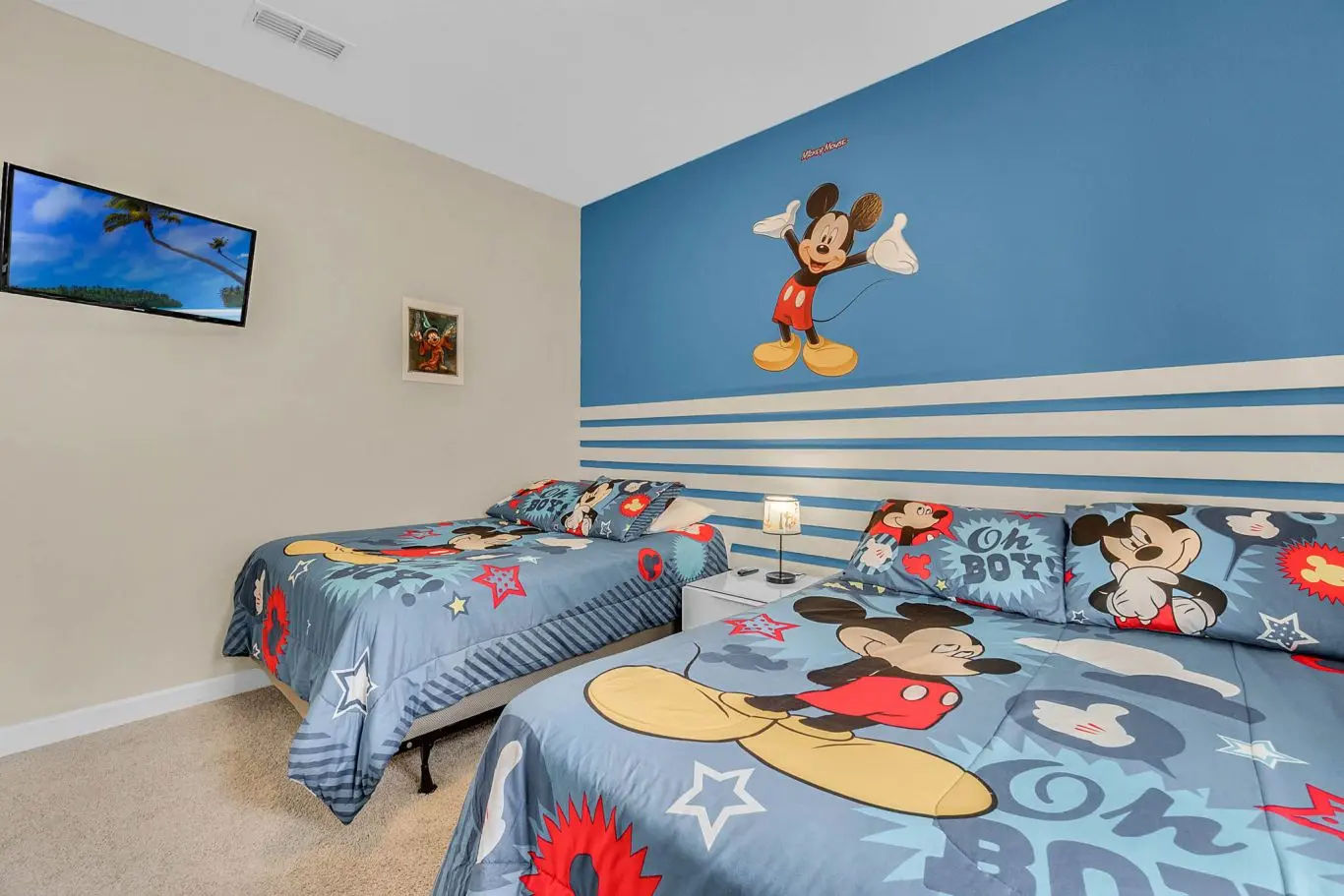 Quarto 2 com duas camas de casal e decoração do Mickey