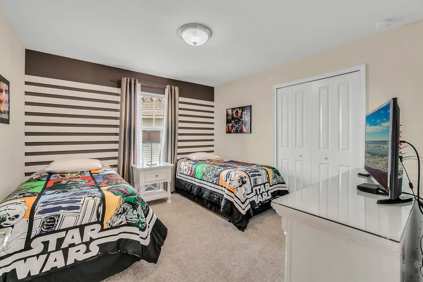 Quarto 4 com duas camas de solteiro e decoração do Star Wars