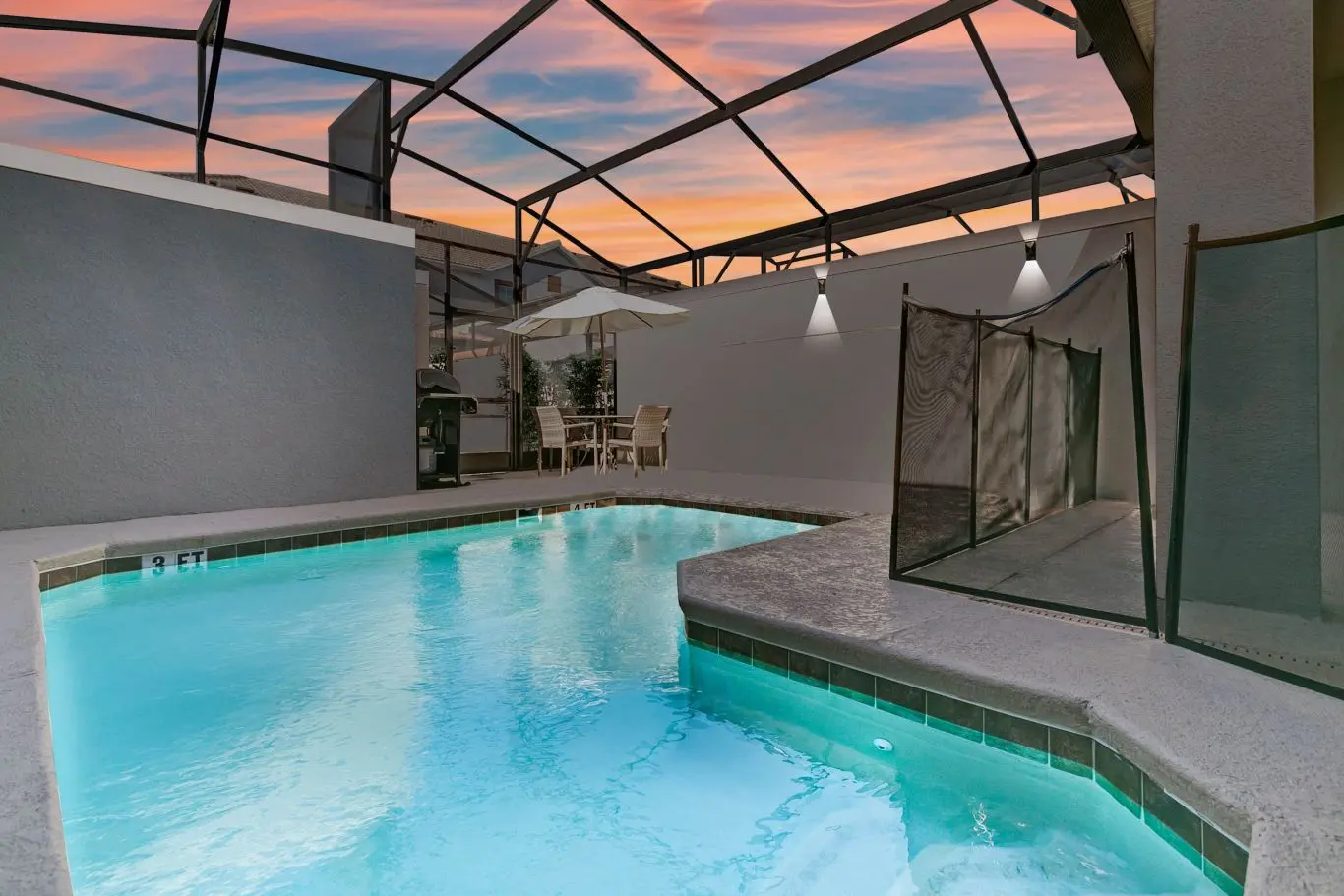 A piscina oferece um espaço reservado para aproveitar o melhor do clima da Flórida. Ideal para relaxar após os parques ou simplesmente curtir um dia tranquilo em casa com quem você ama.