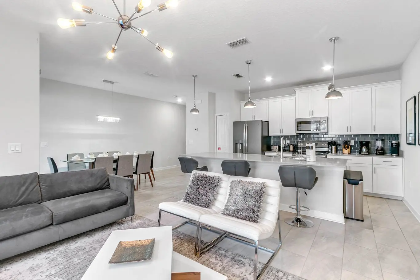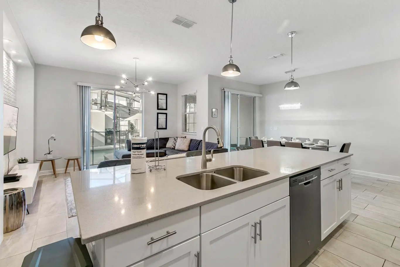 Ganhador! Perfeito para grupos grandes. O lugar é impecável, moderno, confortável e conveniente, bem abastecido e a apenas alguns quilômetros dos parques temáticos. Altamente recomendado. A piscina comunitária também é tão agradável que gostaríamos de ter um dia inteiro para passar lá. Não há pontos negativos, um monte de pontos positivos. Ótima equipe também!
