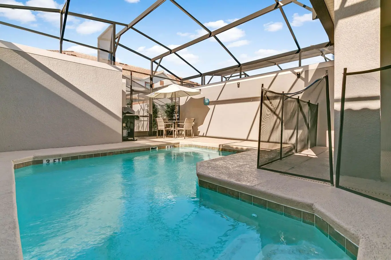 Nossas duas famílias ficaram aqui confortavelmente. Gostei dos toques extras de segurança infantil em toda parte. As crianças adoraram a piscina coberta que mantinha os insetos longe. Fica perto de todos os parques da Disney. A equipe foi muito ágil e amigável. Ficaria aqui novamente.