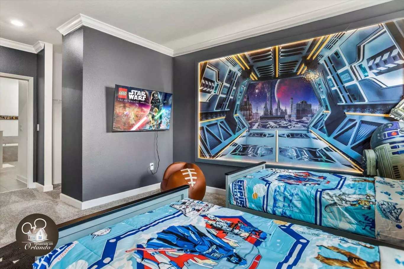 A casa era espaçosa e os quartos tinham ótimos temas e decoração. Nossos filhos adoraram. A piscina era muito limpa, agradável e quente quando chegamos. Storey Lake é minha área favorita para ficar ao visitar a área de Orlando/Disney World.