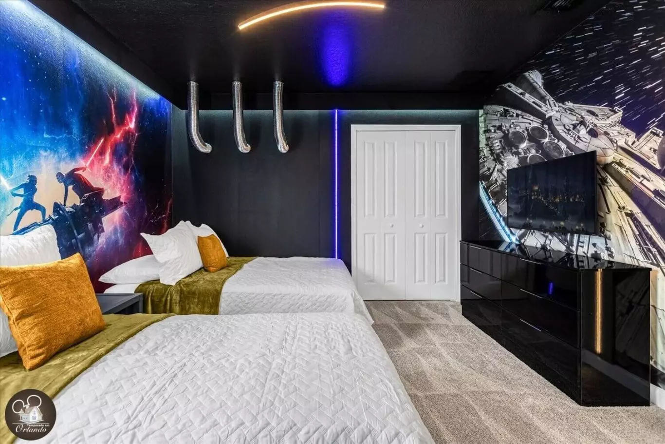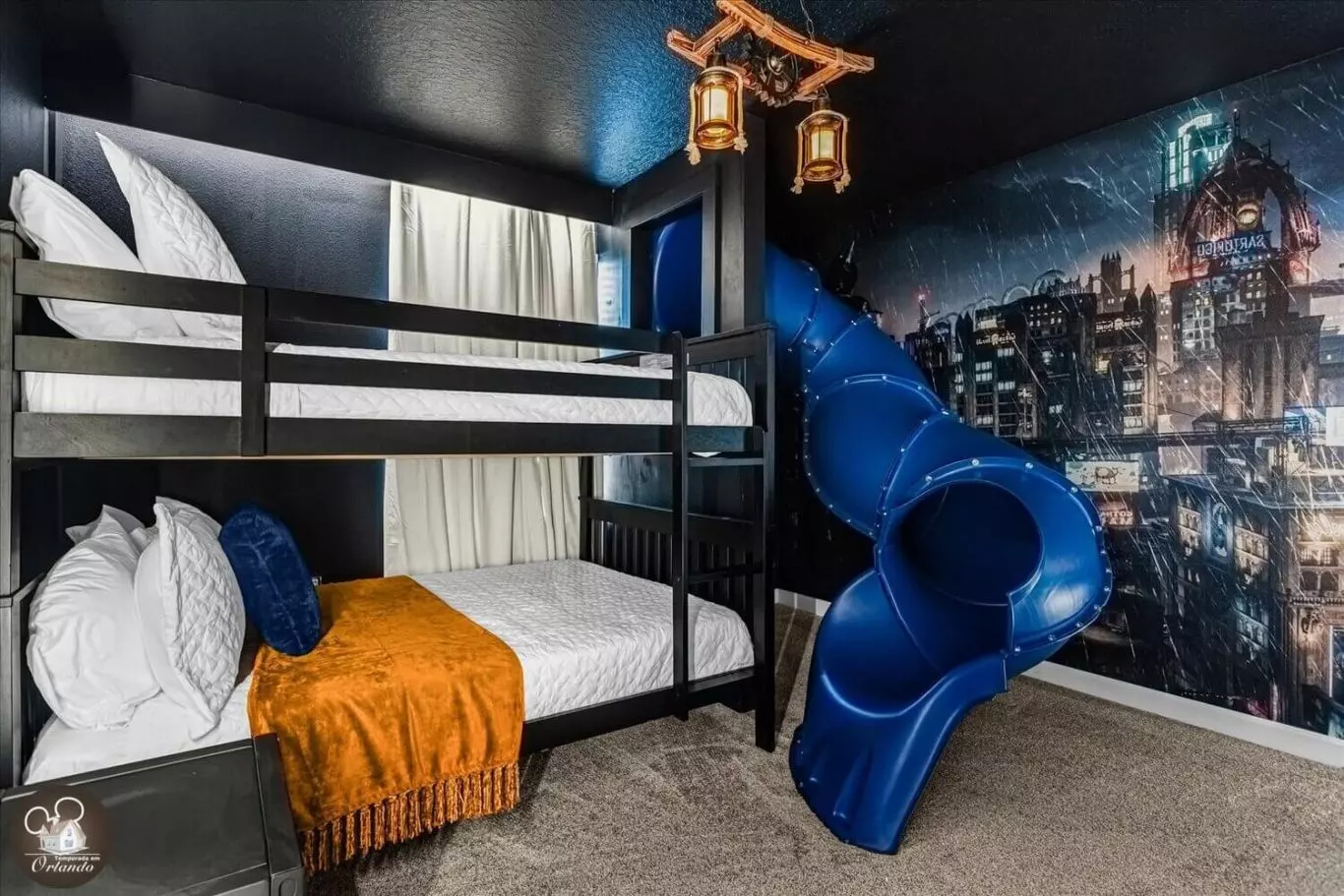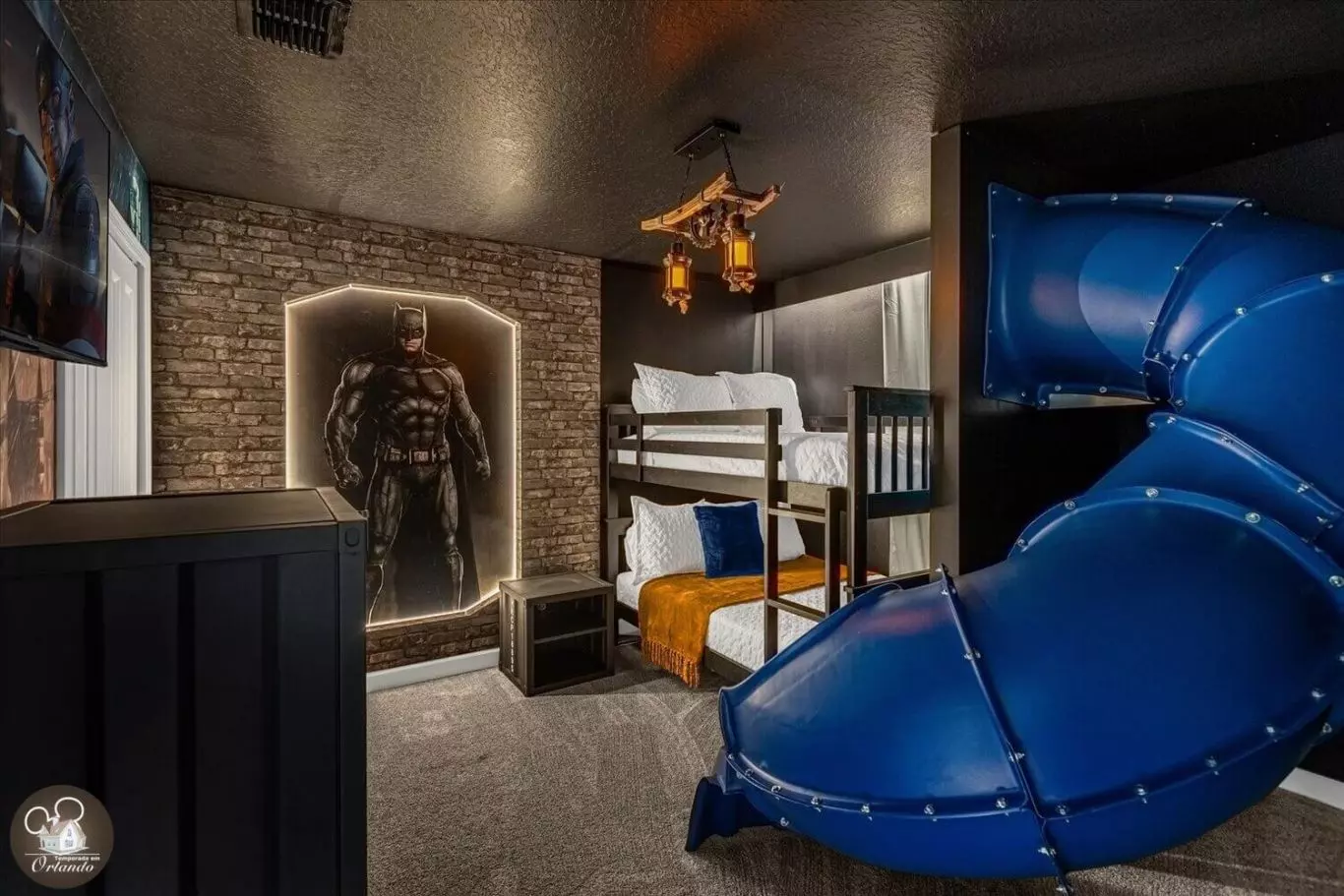 Que bela casa temática! Esta foi uma estadia fantástica para celebrar o aniversário de 18 anos dos nossos gêmeos! Teríamos ficado mais dias, mas a acomodação foi reservada para outro check-in no dia em que fizemos o checkout. Os quartos temáticos eram muito divertidos e todos os adolescentes se divertiram tanto entre a sala de fliperama e os quartos temáticos no andar de cima que mal dormiram! Embora mal dormíssemos aproveitando a casa e as comodidades da comunidade, éramos um grande grupo de 25 pessoas e todos dormiam confortavelmente. Todos tomaram nota da casa porque todos queriam ficar novamente! Acabamos de ter um pequeno problema com uma das camas à noite, mas a equipe foi muito ágil e enviou alguém para consertá-lo na manhã seguinte. Esta foi a primeira vez que usamos a plataforma de reservas e estávamos um pouco nervosos, mas a equipe definitivamente definiu o padrão para nossas próximas estadias. Nós provavelmente escolheremos outra das propriedades da equipe, só porque foi uma experiência fenomenal, nos sentimos confiantes em fazer negócios com eles novamente!
