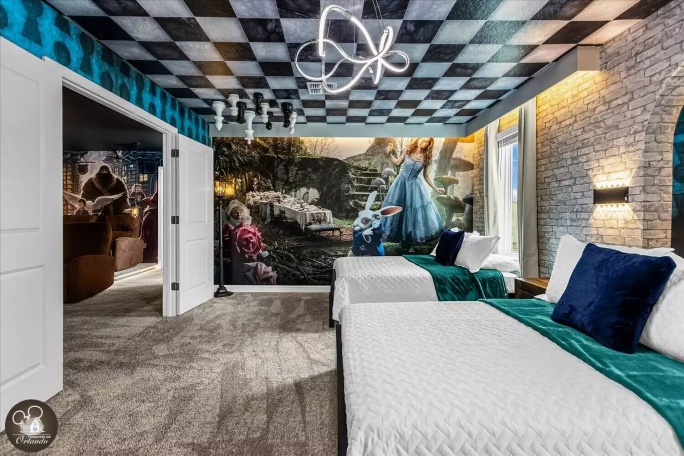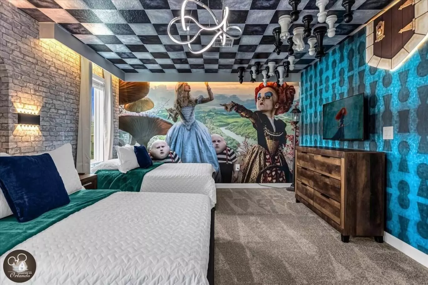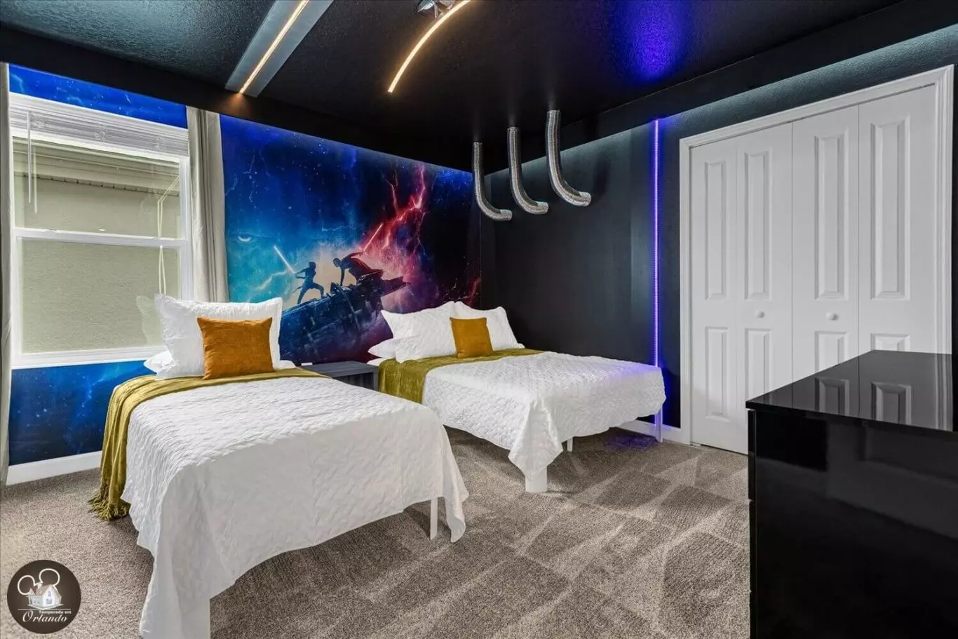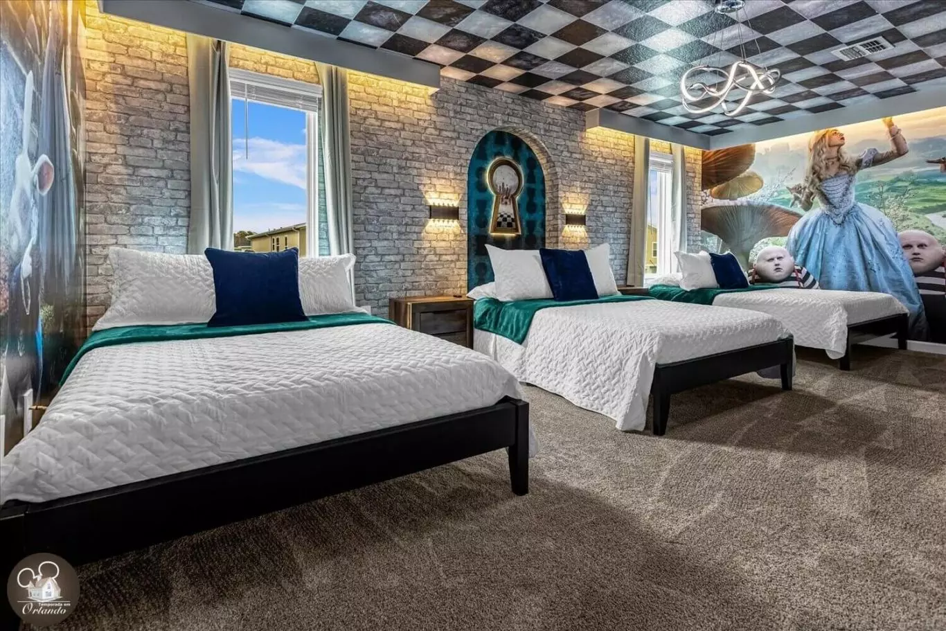 Que bela casa temática! Esta foi uma estadia fantástica para celebrar o aniversário de 18 anos dos nossos gêmeos! Teríamos ficado mais dias, mas a acomodação foi reservada para outro check-in no dia em que fizemos o checkout. Os quartos temáticos eram muito divertidos e todos os adolescentes se divertiram tanto entre a sala de fliperama e os quartos temáticos no andar de cima que mal dormiram! Embora mal dormíssemos aproveitando a casa e as comodidades da comunidade, éramos um grande grupo de 25 pessoas e todos dormiam confortavelmente. Todos tomaram nota da casa porque todos queriam ficar novamente! Acabamos de ter um pequeno problema com uma das camas à noite, mas a equipe foi muito ágil e enviou alguém para consertá-lo na manhã seguinte. Esta foi a primeira vez que usamos a plataforma de reservas e estávamos um pouco nervosos, mas a equipe definitivamente definiu o padrão para nossas próximas estadias. Nós provavelmente escolheremos outra das propriedades da equipe, só porque foi uma experiência fenomenal, nos sentimos confiantes em fazer negócios com eles novamente!